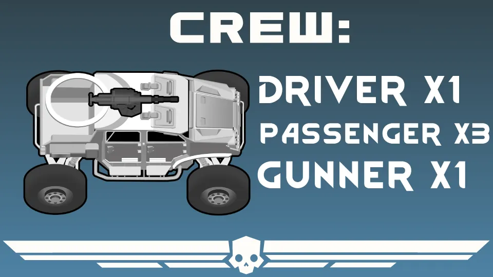 The FRV is the first wheeled vehicle used by the Helldivers in the Second Galactic War. It is an AWD vehicle with an automatic transmission.