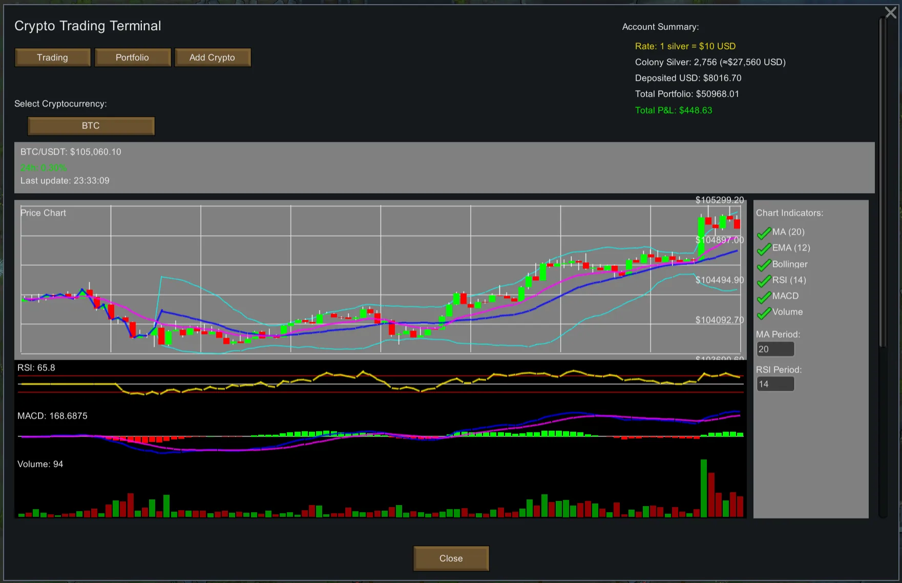 [*] [b]Real-Time Crypto Trading[/b] - Watch actual cryptocurrency prices fluctuate while your colony burns down around you
