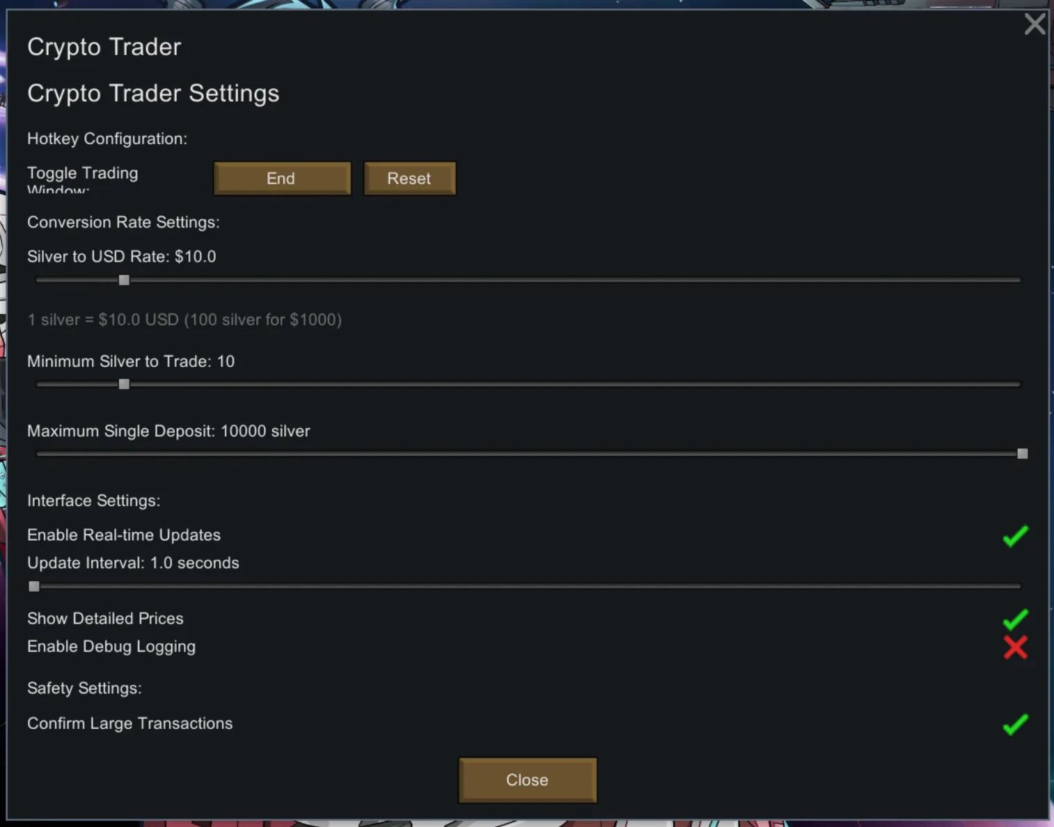 [*] [b]Convert Silver to "USD"[/b] - Because apparently silver wasn't volatile enough for your taste