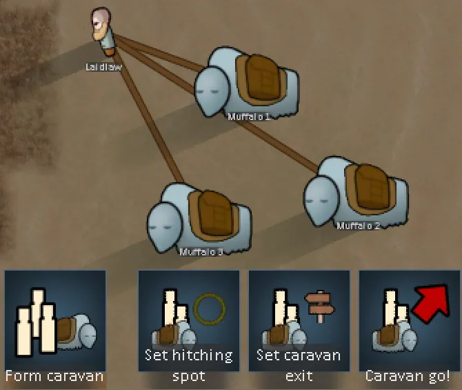 [*] "Caravan go!" Forces the caravan to skip packing the rest of the stuff and just take the animals, if any, and go. Also usefull for emergency situations. If you are taking downed pawns on your caravan be sure to carry them to the exit spot manually. Otherwise the caravan won't take them!