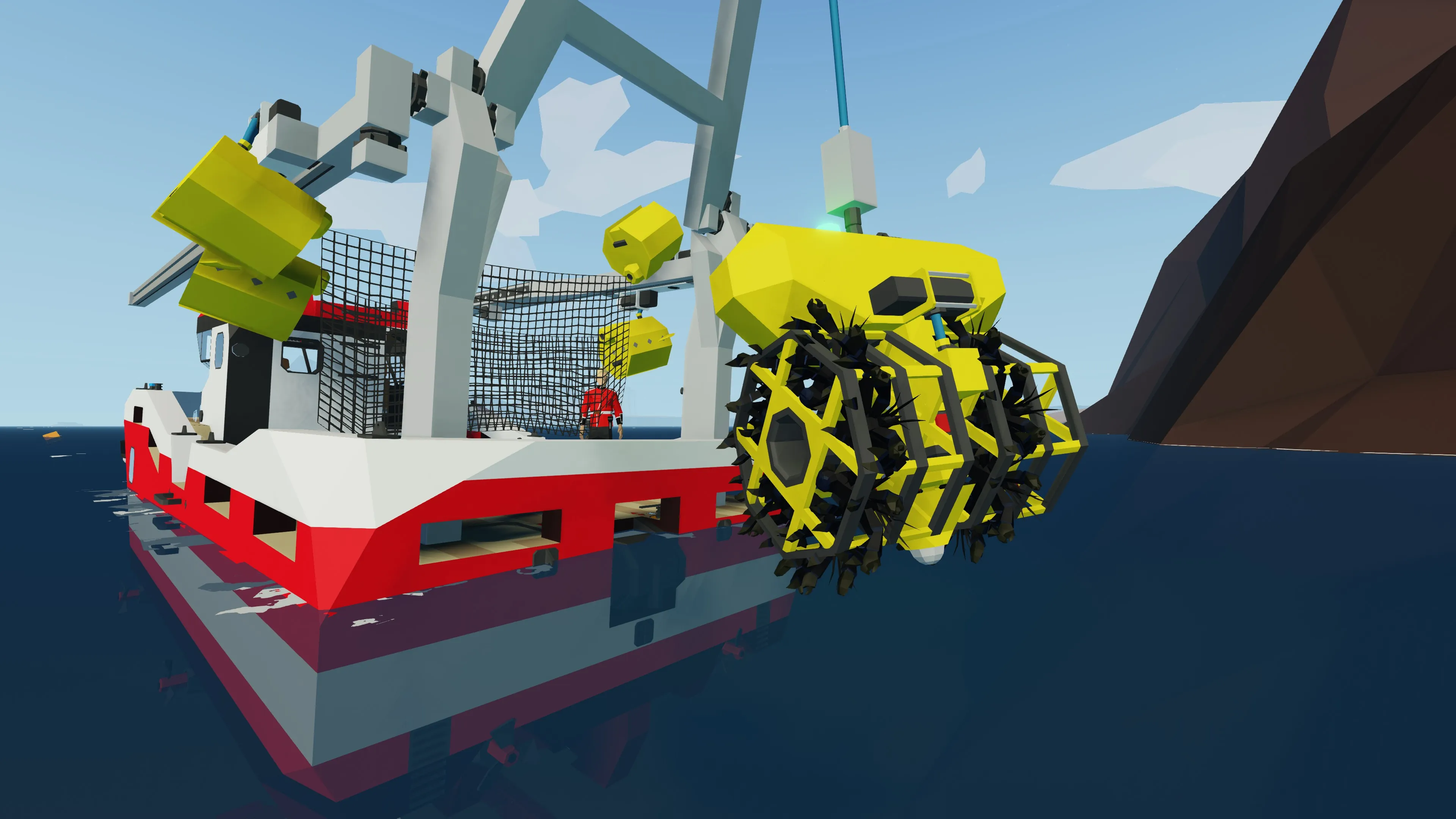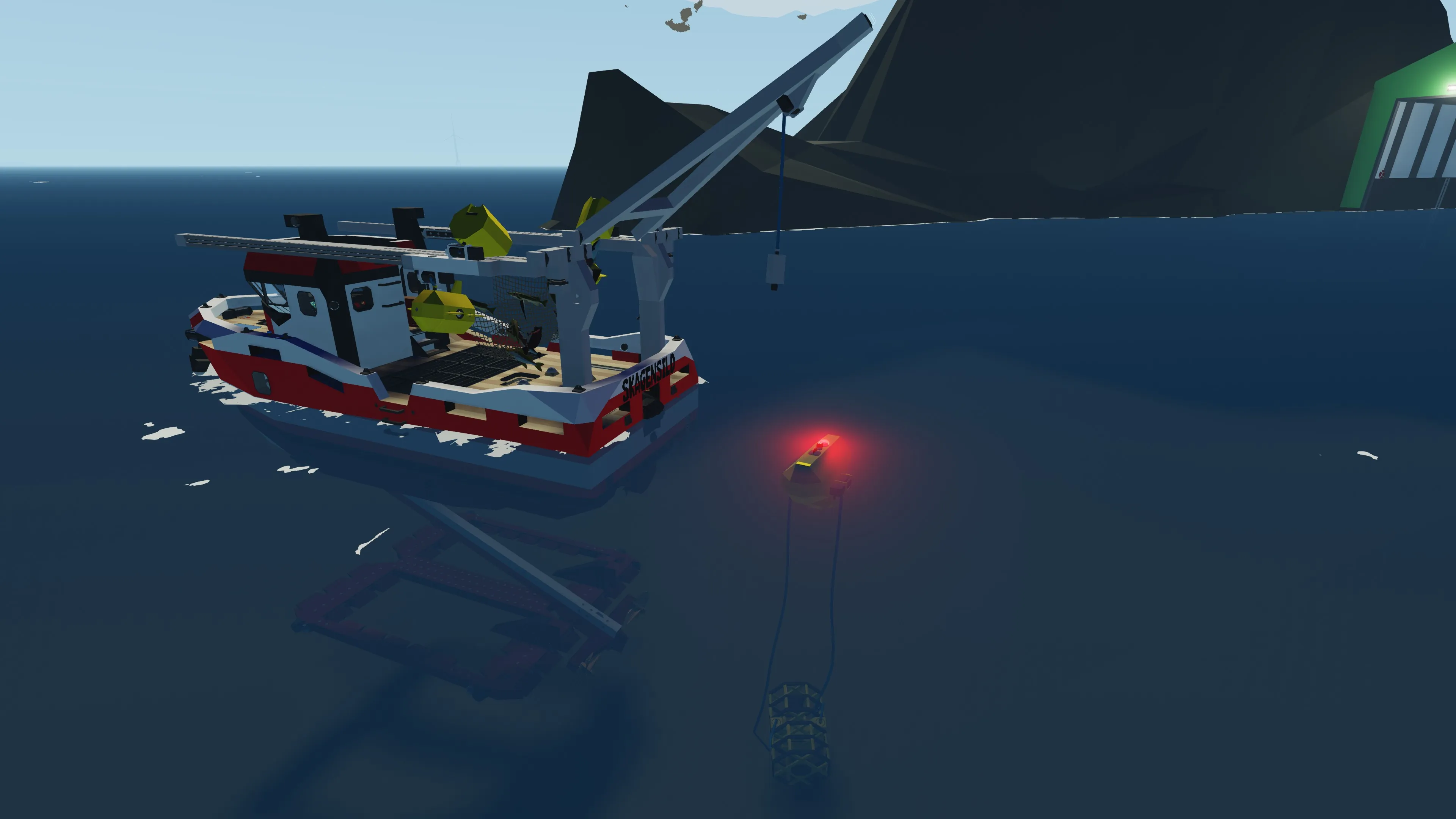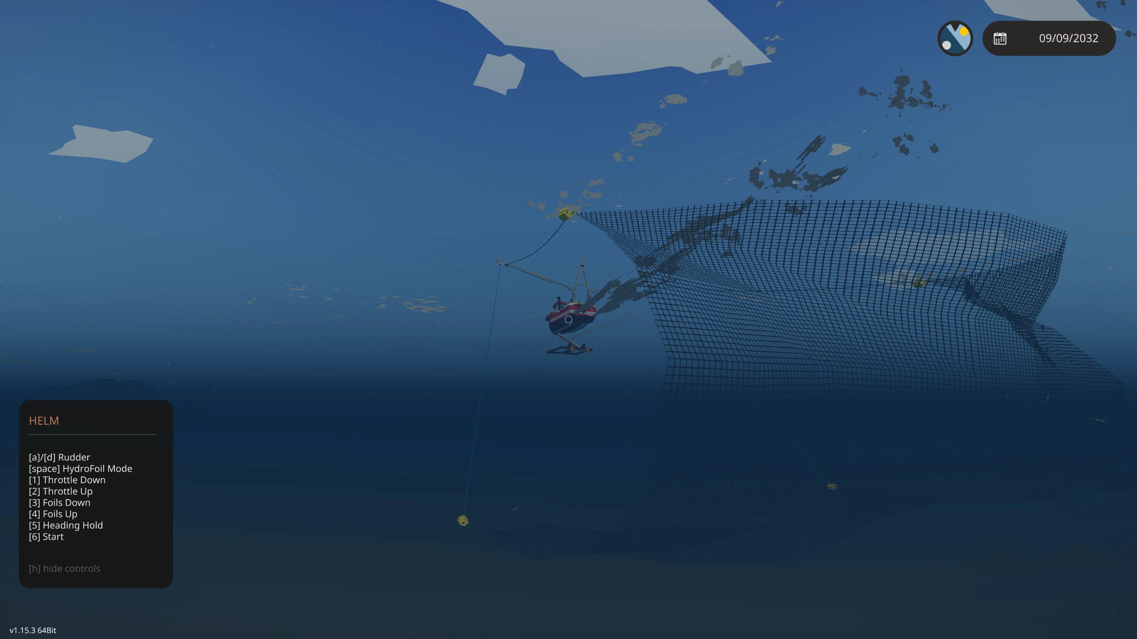 In the cabin, the left hand seat controls the boat and the right hand seat controls the nets and crane. Pretty easy to use, but you should generally have the foils lowered any time you are stopped and have the rigging deployed or are trying to use the crane, as the boat is quite top heavy and can lean uncomfortably. Putting the foils down totally solves that problem. The dock thrusters are on any time the key is off or throttle is at 0. Forward/back with W/S, turn in place with A/D, strafe with </> arrows.