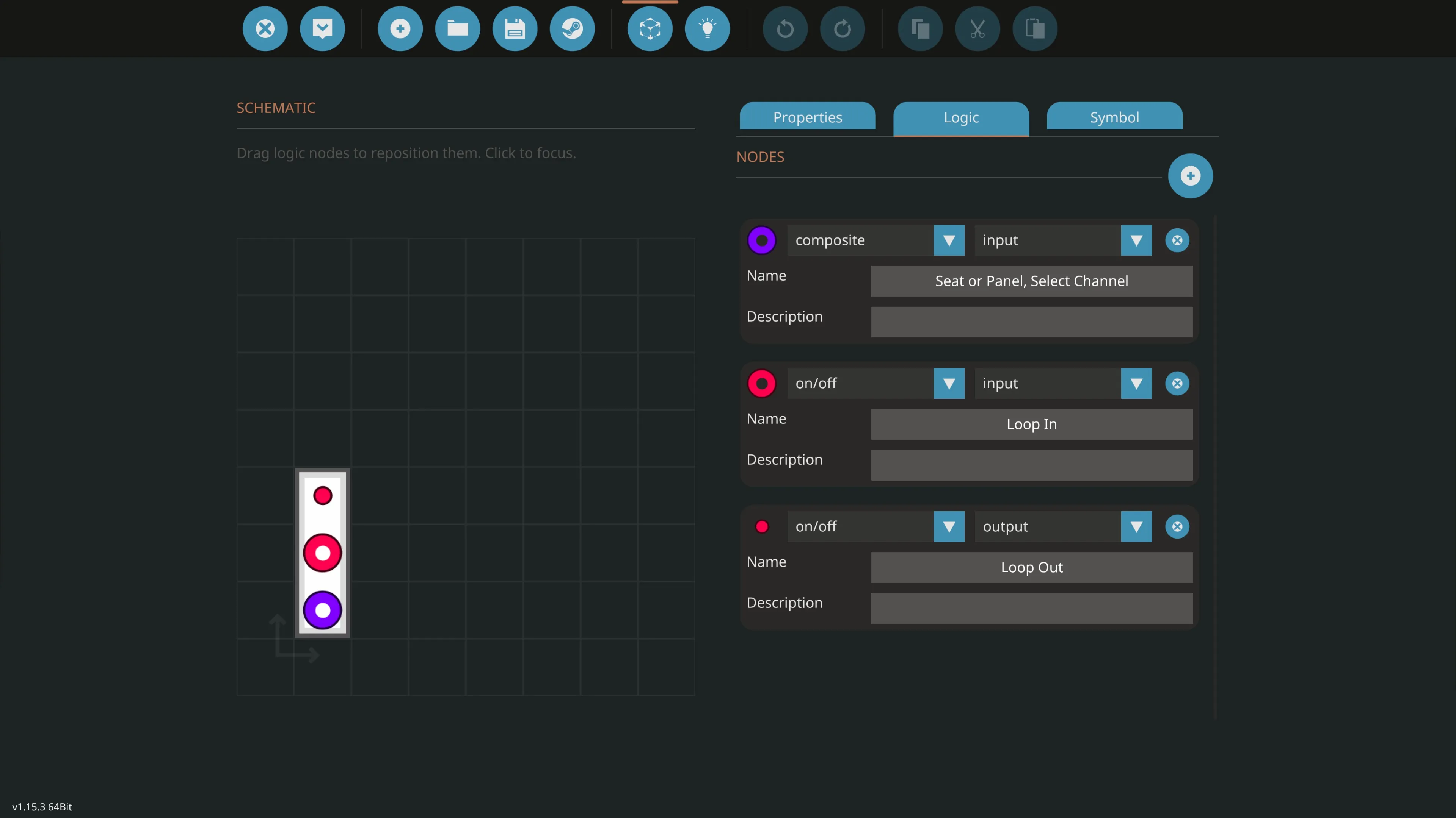 This lets you insert the toggle from a seat or instrument panel to a toggle button loop, so the seat can be used in cooperation with many toggle buttons in various places. The loop is toggled on or off by the seat/panel no matter whether the seat/panel is giving an on or off output. The status of the toggle buttons is what matters, and the seat/panel just sets the loop to the opposite.