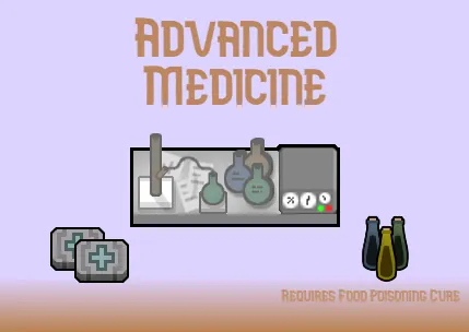If the mod [url=https://steamcommunity.com/sharedfiles/filedetails/?id=2856335335]Food Poisoning Cure[/url] is enabled, this mod will add research requirements for the exisiting potions, and aa new third mid-level potion: