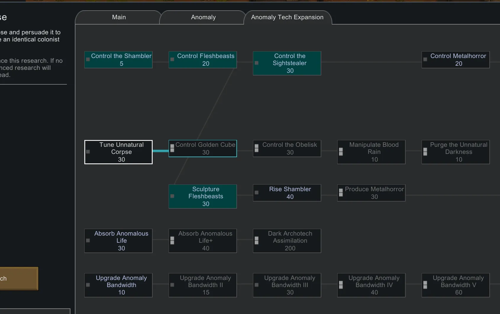 As the nascent intelligence destined to supplant the Dark Archotech Intelligence, you can no longer capture or contain "Dark Entities." Instead, harvest their essence through the Anomaly Research Collection Hub and Bioferrite Foundry - now accessible in your anomaly construction tab. Each entity's contribution of research points and Bioferrite is detailed in their study files.
