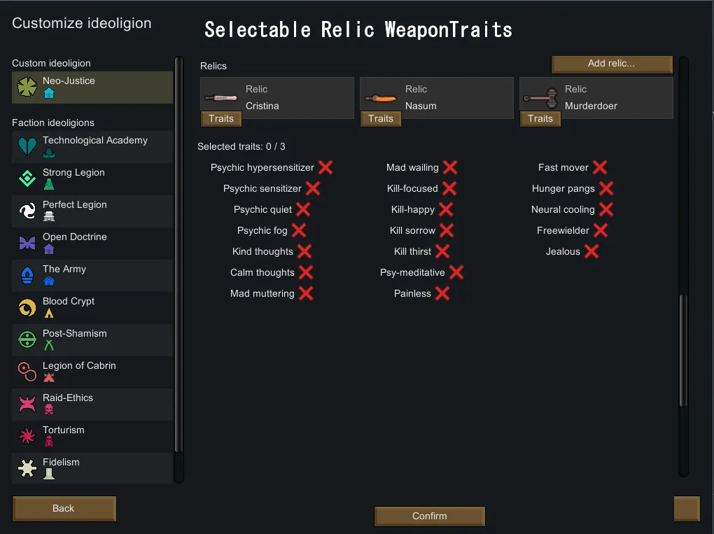 Allows the traits of the Relic Persona weapon to be set on the Customize Ideoligion.