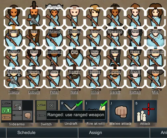 Pawns can be made to switch to ranged weapons regardless of their preferred setting or forced to use melee or unarmed fighting via four simple buttons.