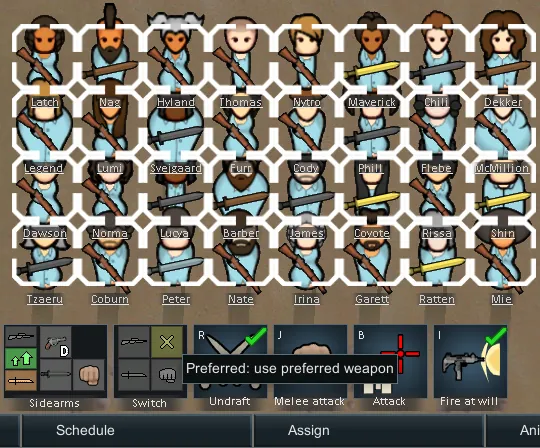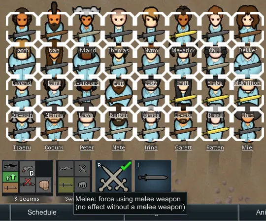 This works for [b]multiple selected pawns at once with a single click[/b], no longer requiring you to select and switch the weapon for each pawn one by one.