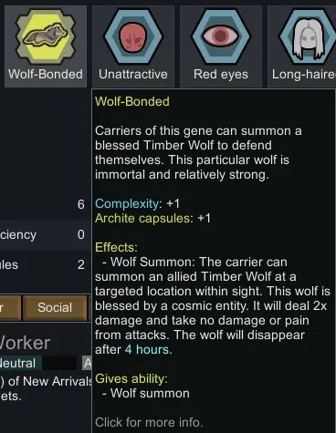 This archite xenohuman is relatively normal. They can summon a "blessed" Timber Wolf to defend themselves. This wolf is immortal and is physically stronger than the average wolf. After some time, this wolf will disappear.