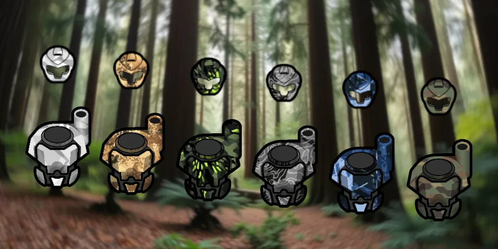 This armor always struck me as being very 'spec-ops', jumping into melee combat to decimate unwary opponents then melting into the forest afterwards. These guys got the "Veitnam Green Beret" treatment, getting a full array of Tiger Stripe camo for each of the six terrain types. Locust armor doesn't get a dedicated helmet, so I created a new class of Locust Helmets in matching camo, these helmets are identical to regular Recon helmet stats since the Locust armor is a Recon modification.