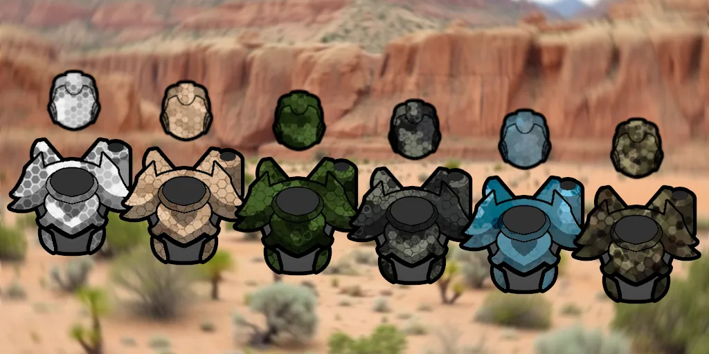 The Grenadier is a modification of the standard Marine specialized in breaching buildings and ships, so I gave them a kind of step-up from the standard camo that matched their more specialized nature. At least IMHO the camos were somewhat more specialized in their visual appearances to match the specialized role of the Grenadiers. Again, they don't have a dedicated helmet so they got named re-skins of Marine helmets. Identical stats, bespoke name and paint.