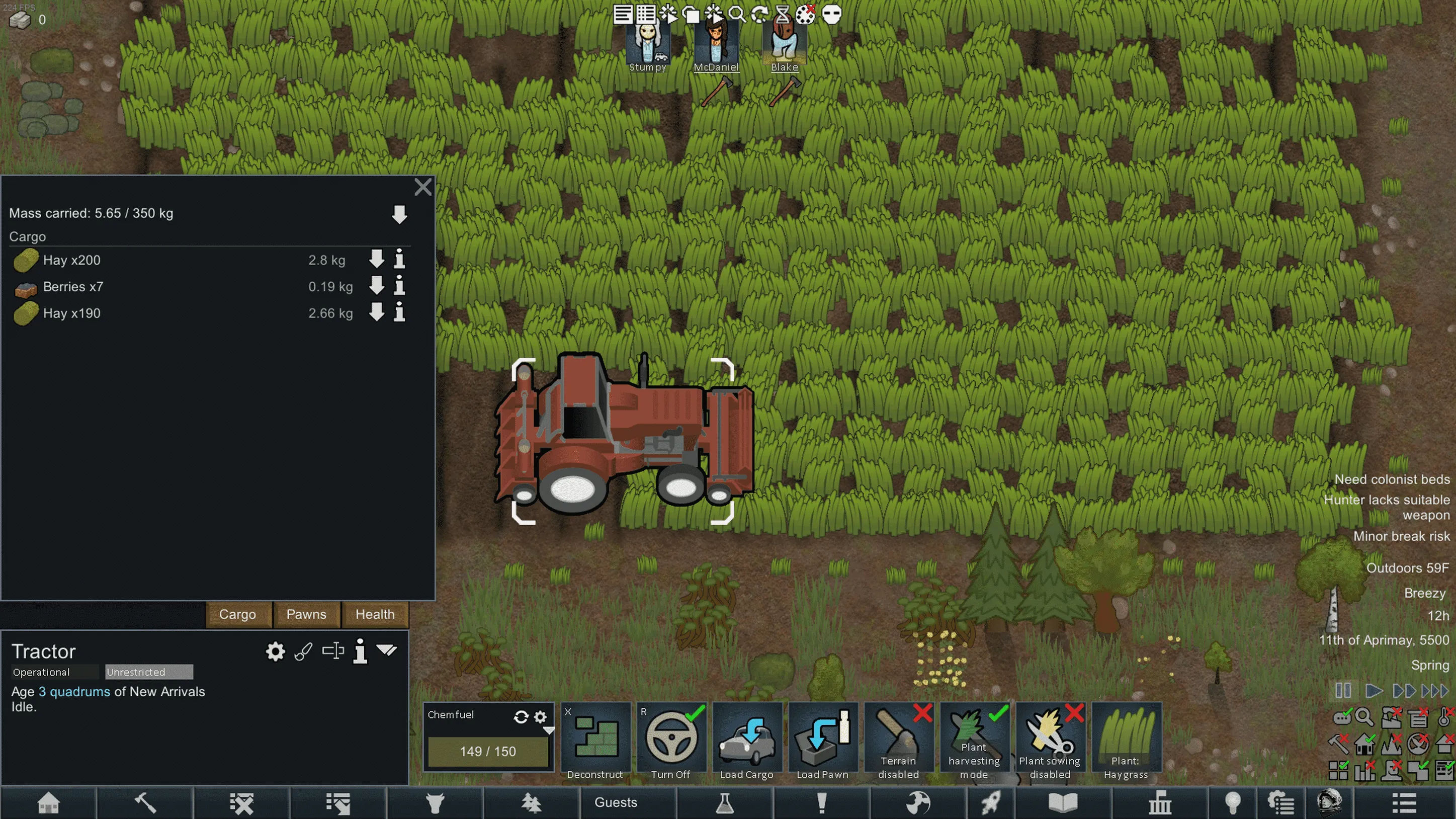 The several icons on the bottom when using the tractor should assist with what to do, such as turning planting or harvesting on and off and so on.