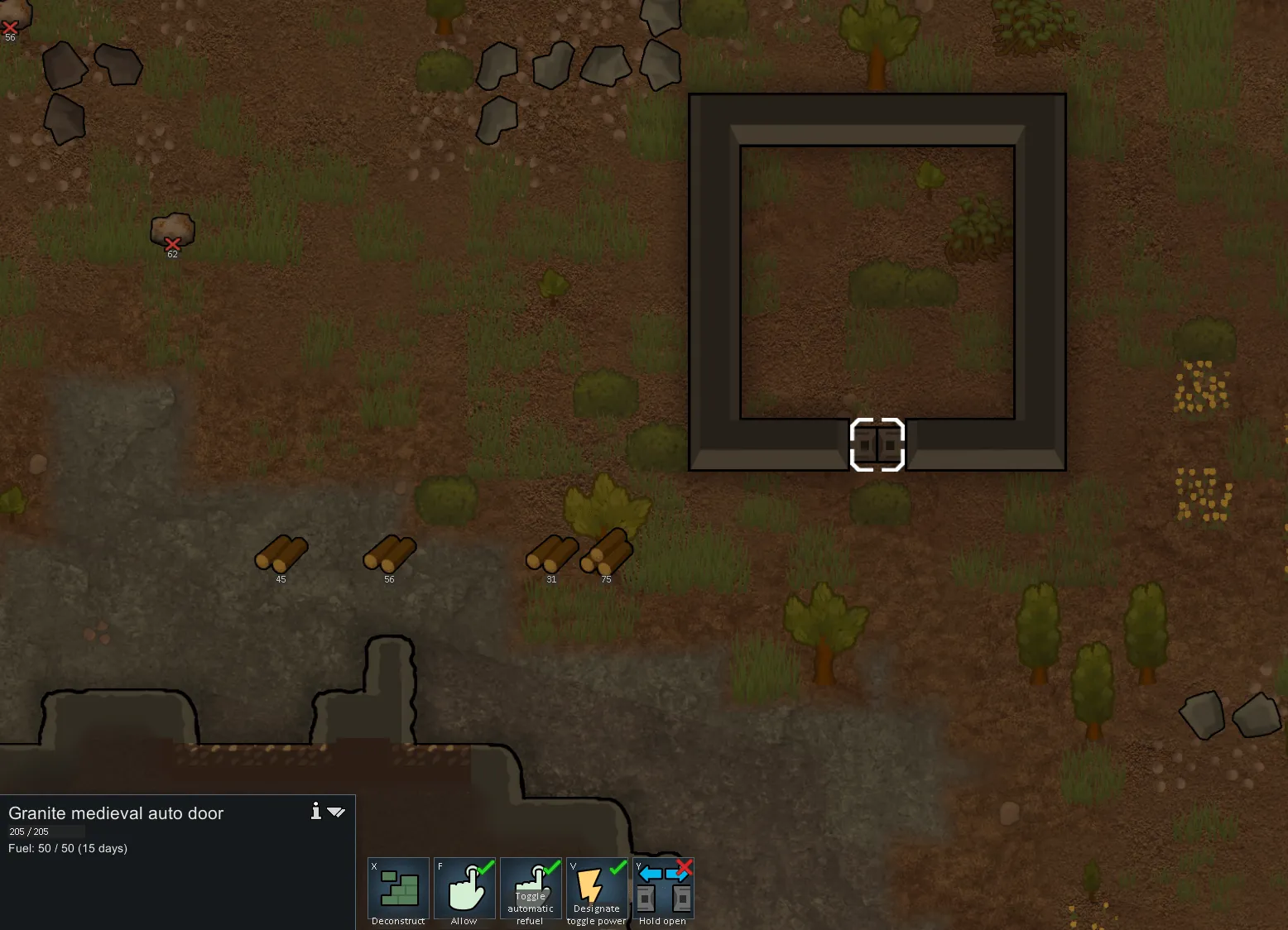 Adds a door that can be filled with wood (like a generator) that will allow for instantaneous opening. By default, 50 wood lasts for 15 days. These doors are weaker than regular doors and can't be made of anything but woody or stony material.