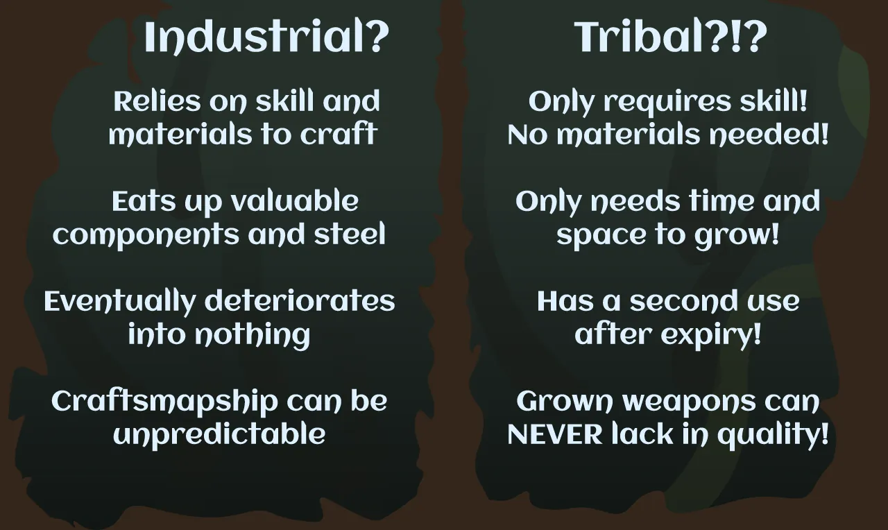 Introducing a high fantasy, tribal-oriented mod that introduces the ability to grow weapons and defenses in your garden, rather than machining them together.... while also figuring out how to be balanced!