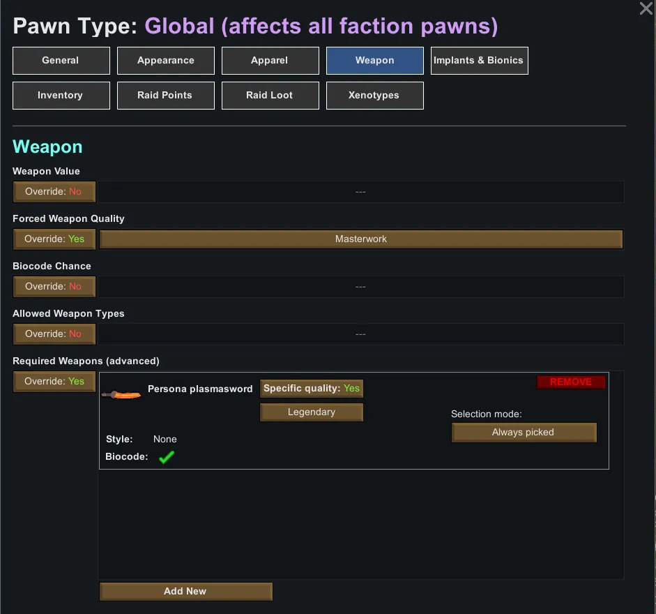 6. Click "Add New" and select the pawnkind you wish to edit