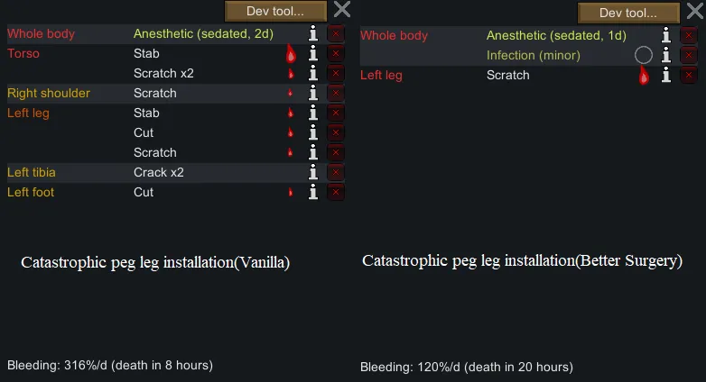 This mod fixes 2 issues with rimworld surgery: