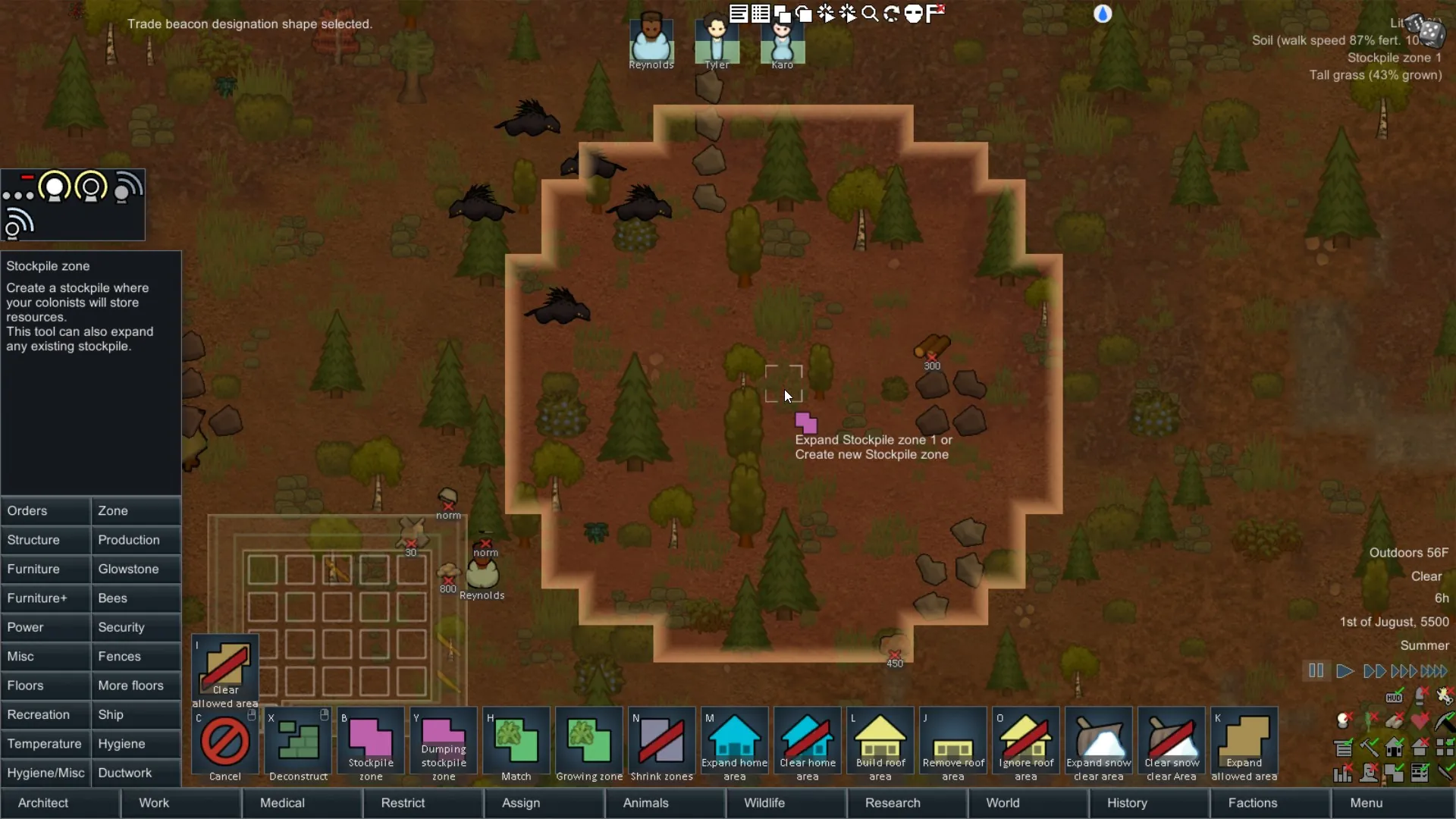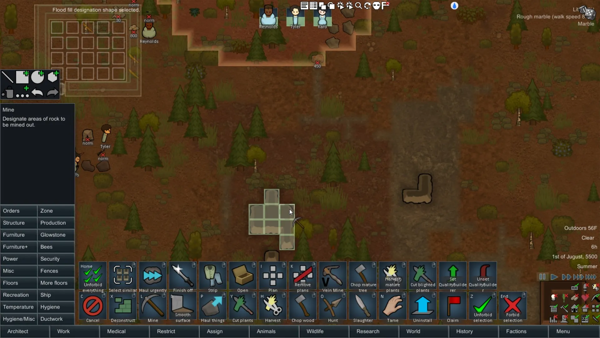 - Select the task you want to do (build, mine, zone, etc.)