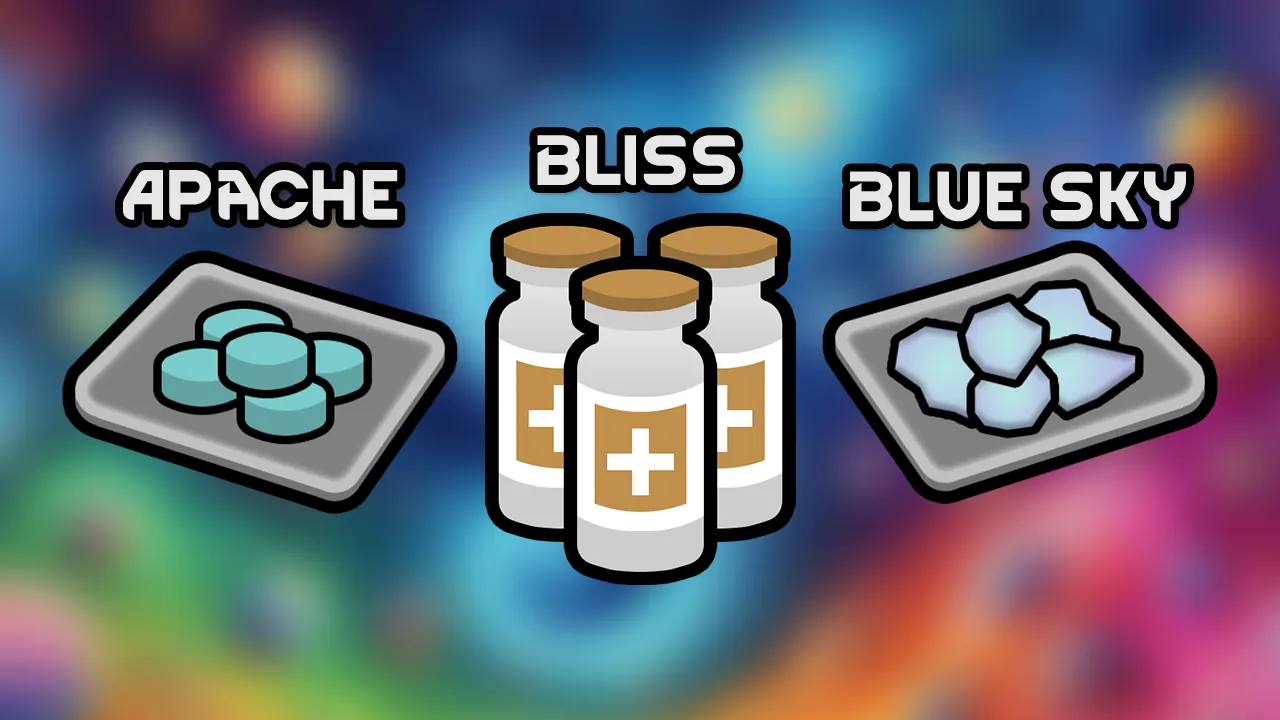 [b]Adds 3 new craftable drugs to the game: Bliss (Morphine), Blue Sky (Meth) and Apache (Fentanyl)[/b]