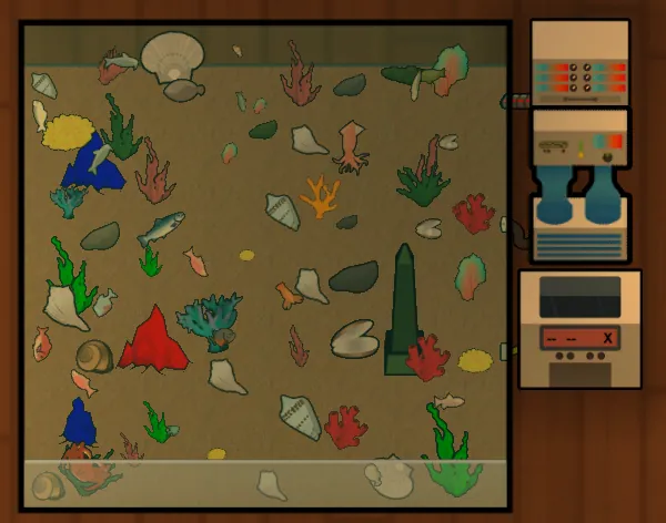 Each tank can be decorated with a specific floor and an arbitrary amount of decorations. You can use the sophisticated editor to move decorations around, rotate and layer to your hearts desire. Add decorations and move them around easily by selecting them on the left and dragging them on the preview section on the right. You can use your mouse wheel to increase and decrease the size of decorations.