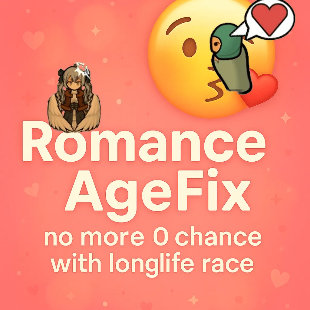 This mod modifies the effect of age on romance probability for long-lived races,allowing them to better love short-lived races.