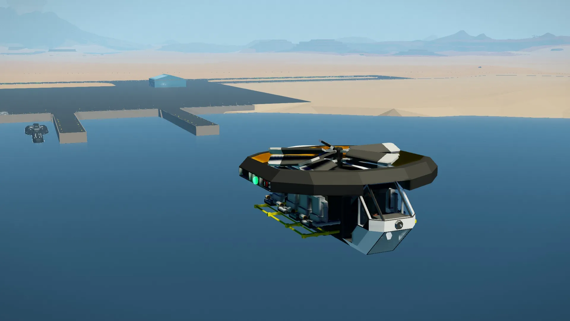 A small and portable air taxi for the Scinfaxi submarine. Its simple, and easy to fly. It can transport or rescue up to 8 passengers at a time. Allowing for quick docking maneuvers, rescue missions, or island takeovers from the Scinfaxi or other ships.