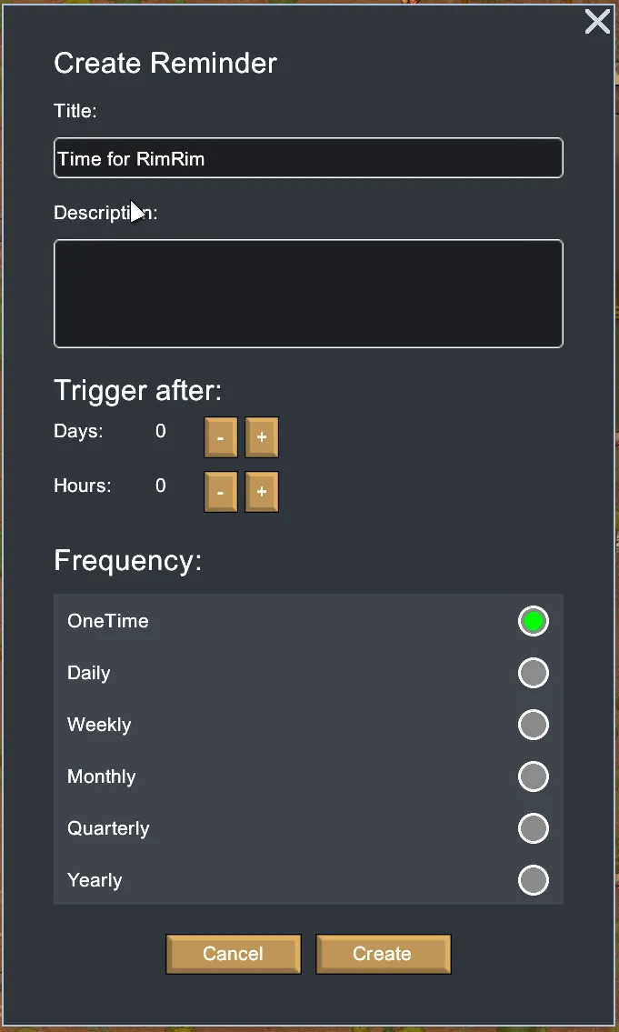 Riminder is a quality-of-life mod that enhances colony management through a customizable reminder system and the introduction of auto reminders that will trigger on specific conditions.