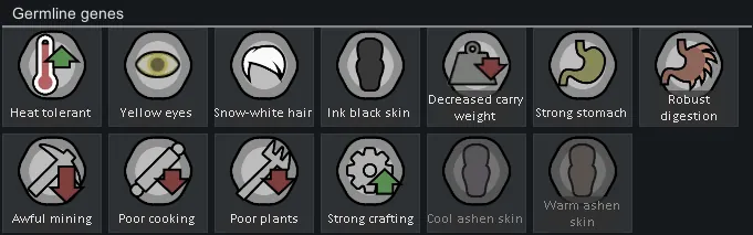Much like their Kenshi counterparts, scorchlanders can eat raw food and excel in crafting. They however struggle with cooking, farming, and especially mining, and can carry less things than their baseliner counterparts. Unlike Kenshi they can tolerate higher temperatures, but I felt it was appropriate given they're mostly desert nomads.