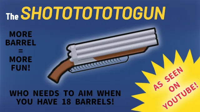 Features 18 barrels, 18 shots per burst, accuracy not guaranteed but you might just kill the Muffalo 50 meters away.