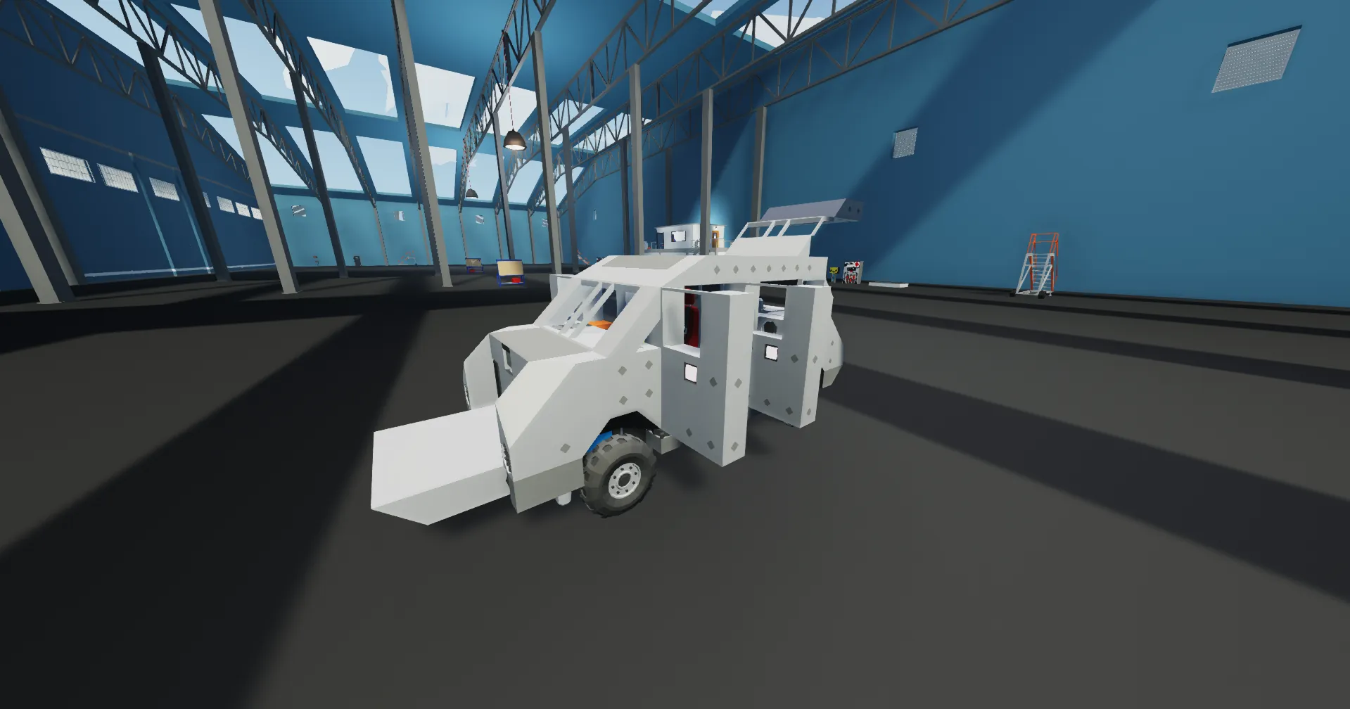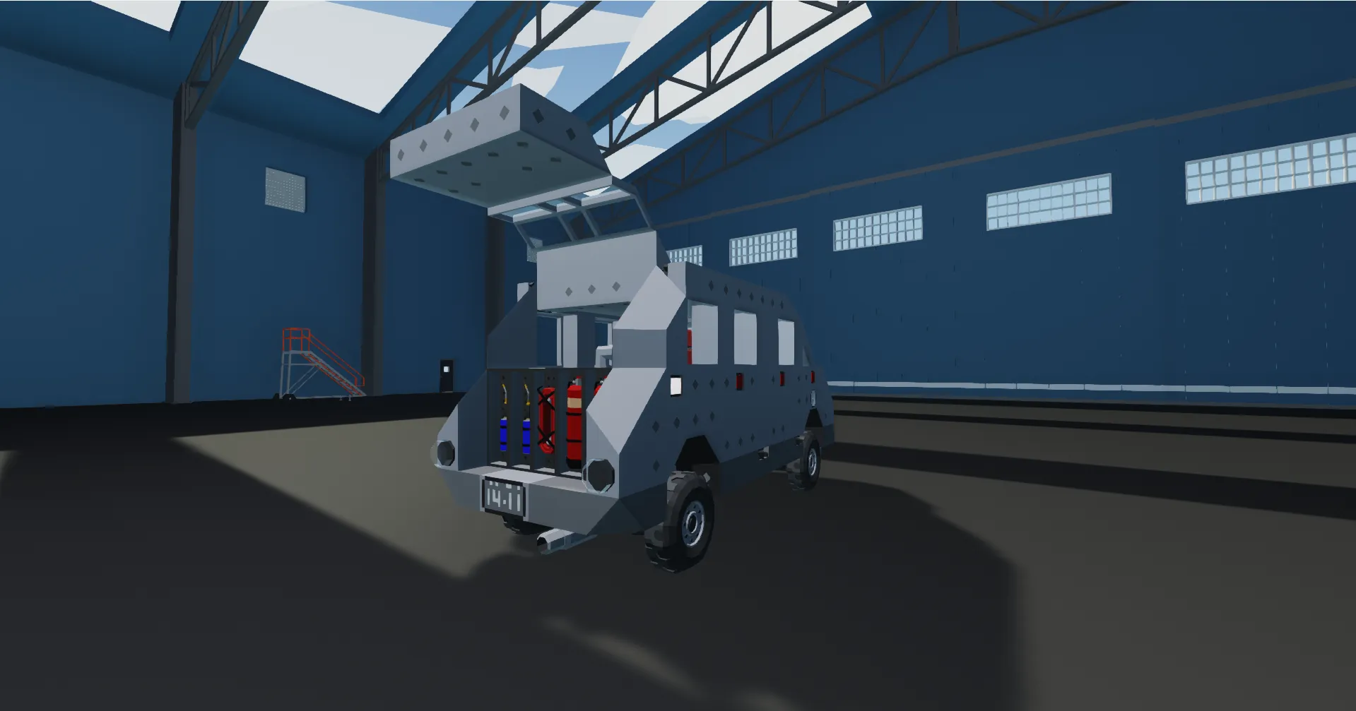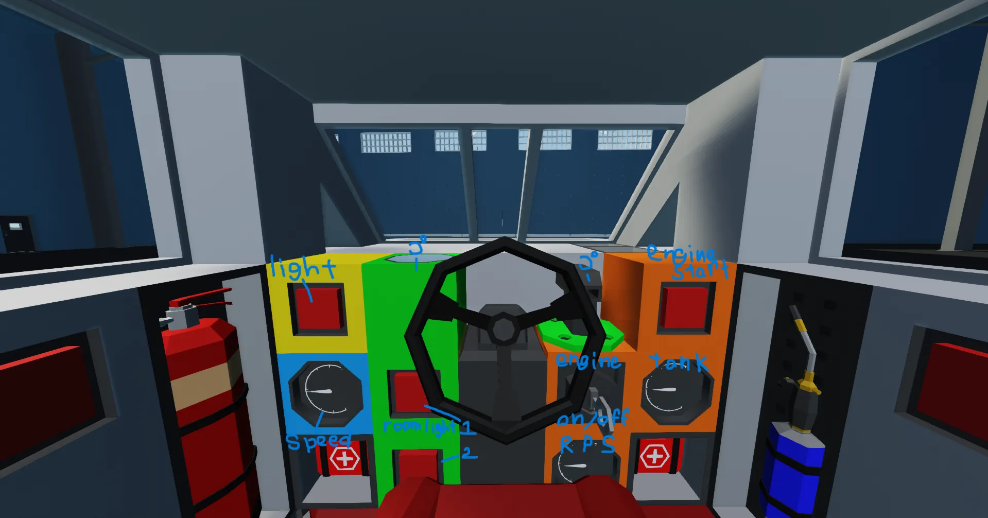Also includes a hidden gimmick: repair torch and fire extinguisher appear from the back door!