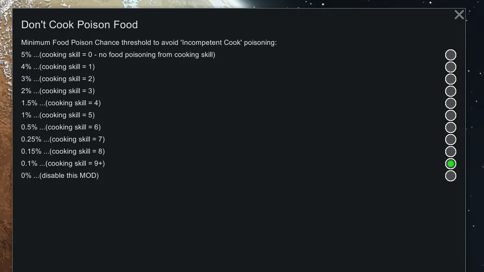 言い換えれば、一定上の料理スキルを持つ入植者は、「下手なコック」による食中毒を引き起こさなくなります。