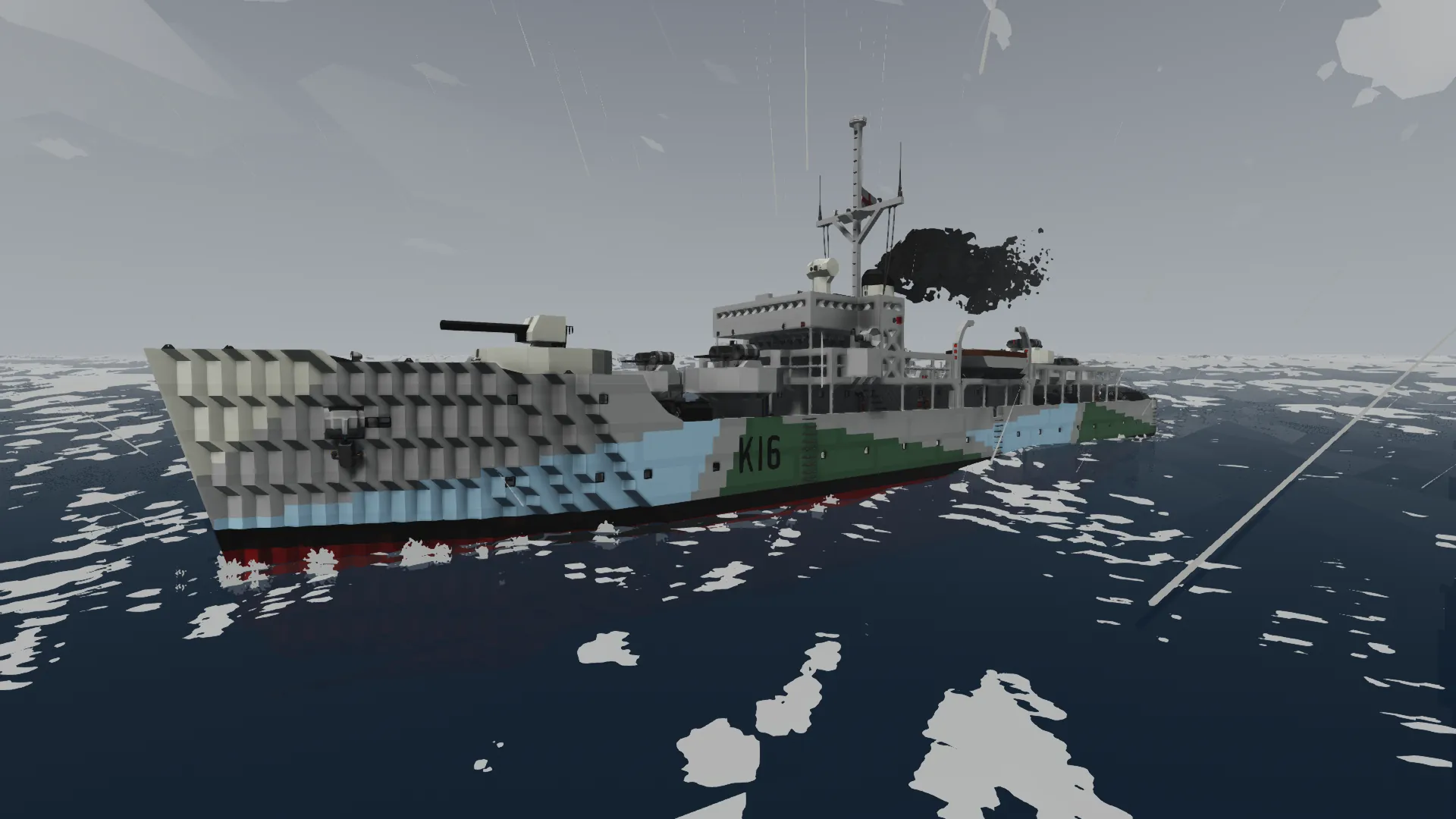 HMS Norgate is the second ship of the fictional Fief-class corvettes, and has been outfitted with much heavier anti-submarine warfare equipment including stern-mounted depth charge racks, side-mounted K-gun depth charge throwers, more sonar sensors, and a towed sonar decoy to spoof acoustic homing torpedoes fielded by the German U-boats she was made to hunt. Like HMS Redmont, the Norgate also has a very good fire-control system for her guns, allowing her to combat threats below, on, or above the sea.
