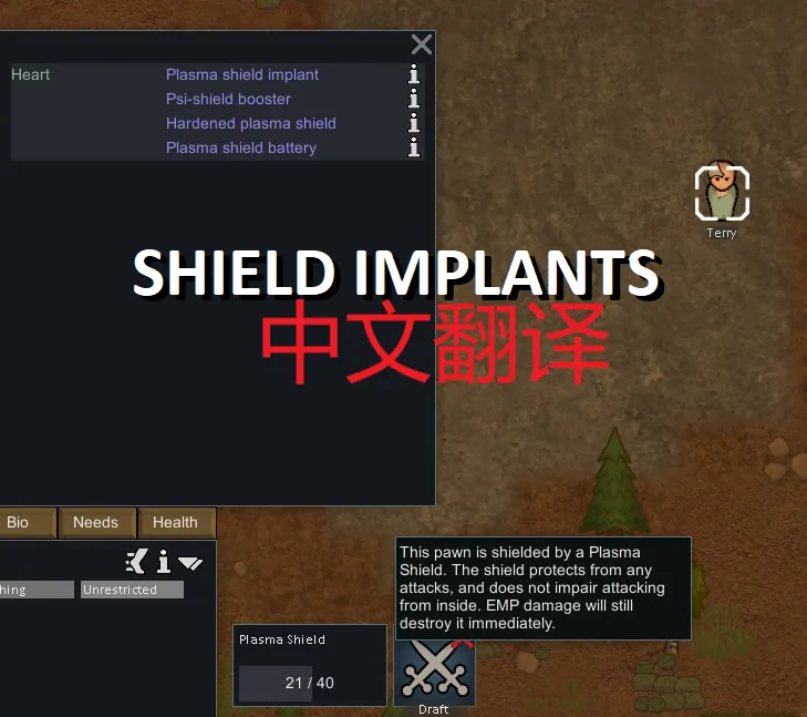 这种植入物产生的护盾不会阻止植入者使用远程武器,也会防止近战攻击造成的伤害。受心灵敏感度影响增加或减少护盾上限。