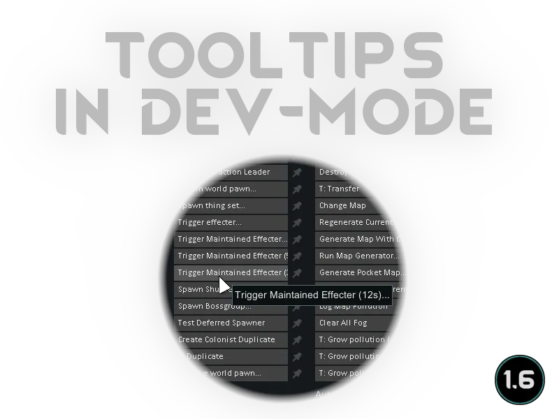 This mod adds a tooltip with the label-text for all buttons in the dev-mode windows whenever the text does not fit the button.