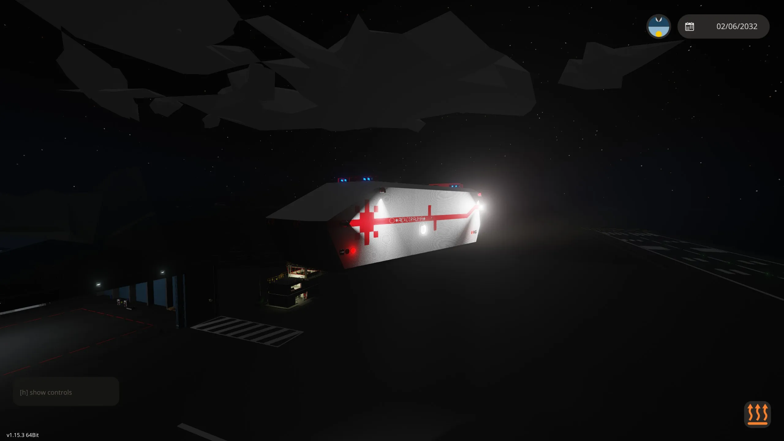 Flashing red-blue hazard strobes and a loudspeaker system to clear skylanes and declare landing zones.