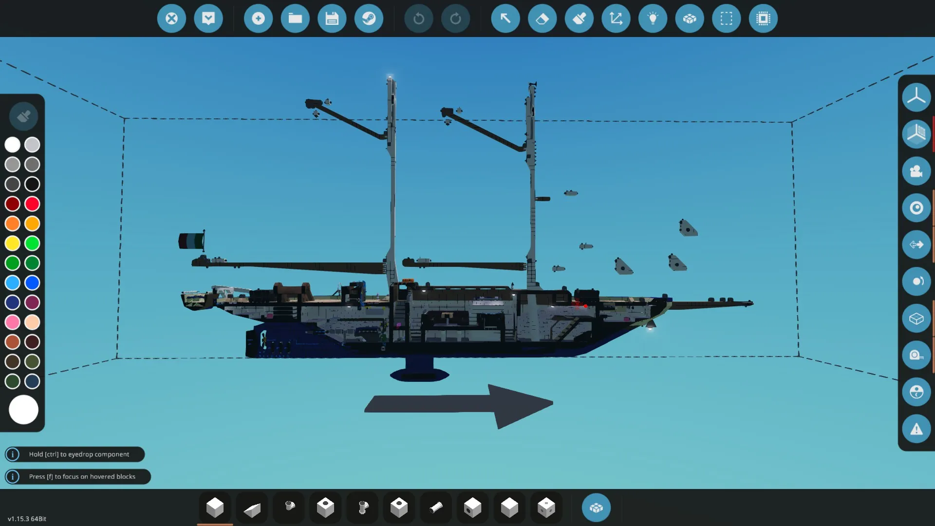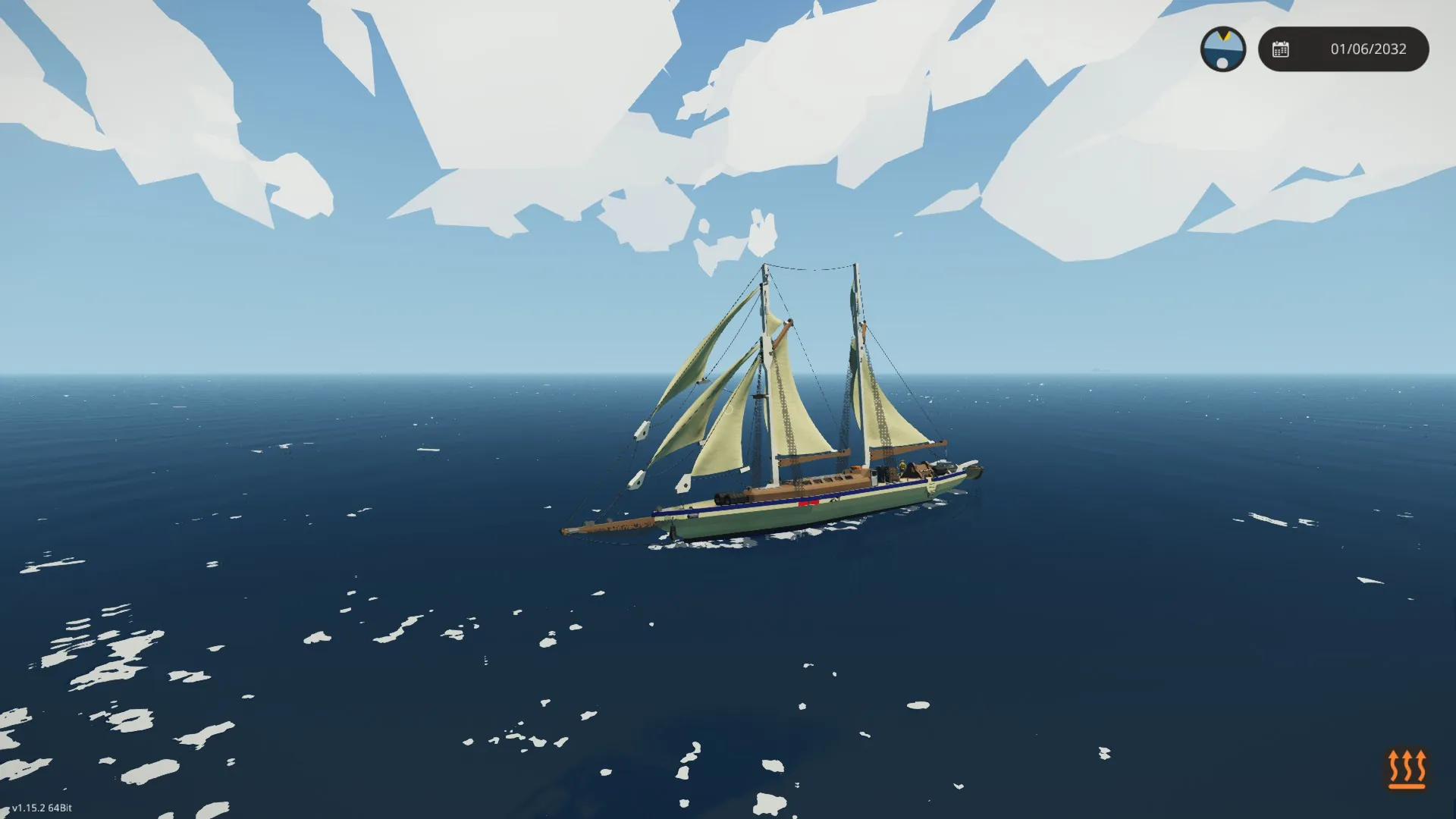 With two Mainsails, two Topsails and three Jibsails it can move quite fast... in strong winds u have to take in some Sails (like in reality).