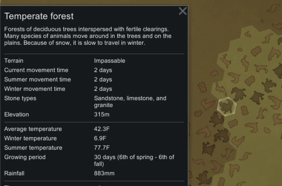 -[b]World Map Movement Difficulty[/b] - How long it takes to cross an impassable tile on the world map