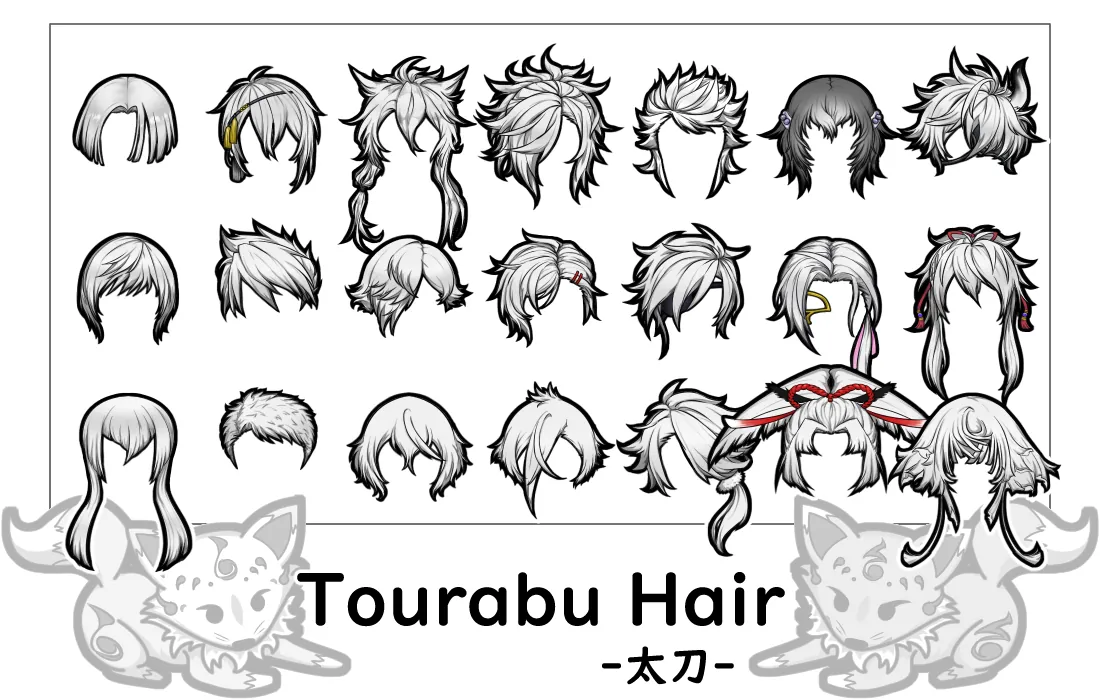 This mod adds hairstyles of the Tachi characters from Touken Ranbu.