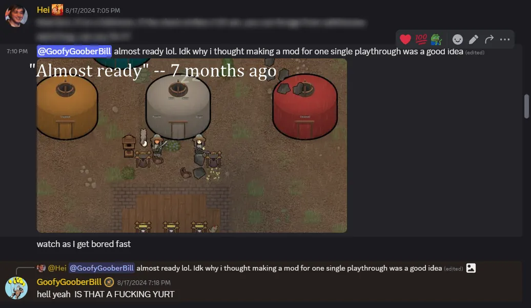 "This mod is coming along nicely, I will finish it up soon and release it!" - Hei, August 17th, 2024
