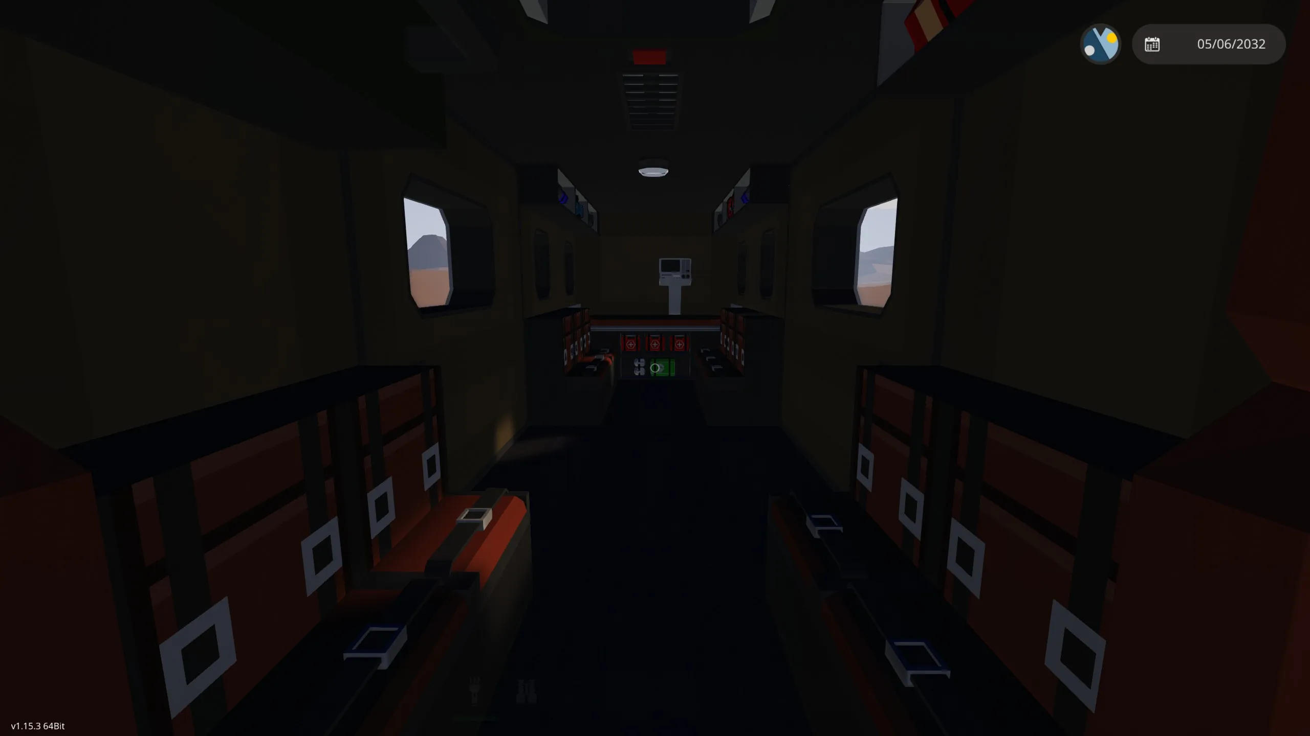 The interior is pretty simple, featuring 1 med bed and 10 passenger seats and a few tools in overhead compartments. There's room to add more tools behind the bed and under the passenger seats.