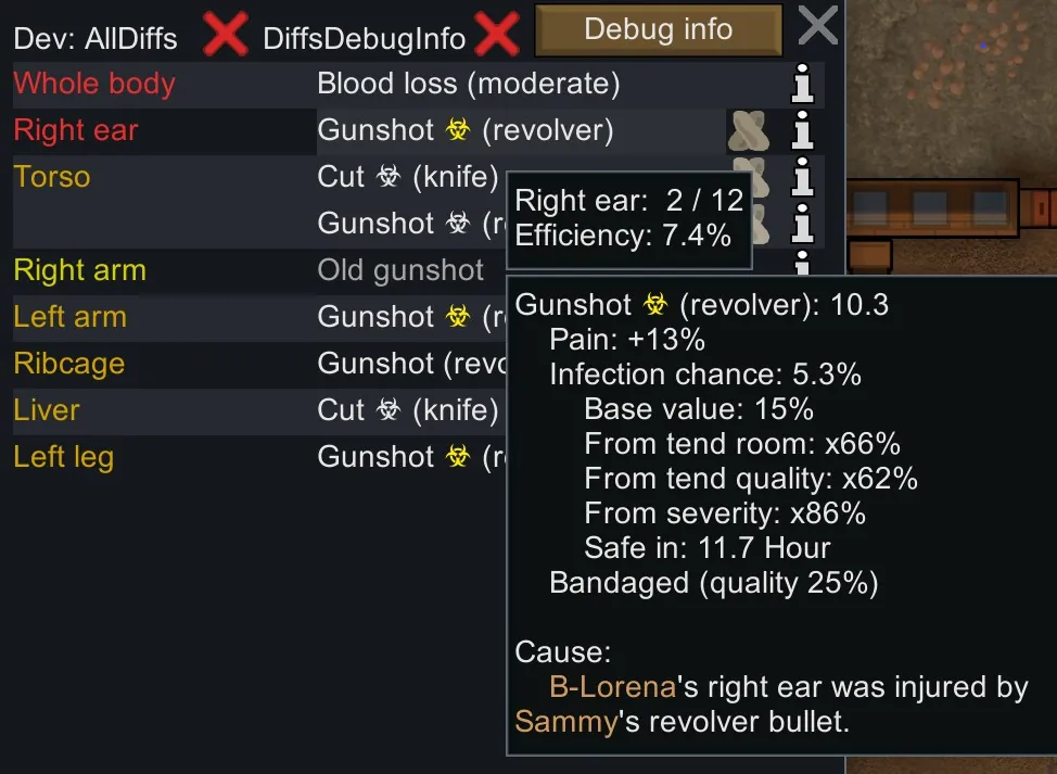 [*] It shows the infection chance breakdown in the injury tooltip.
