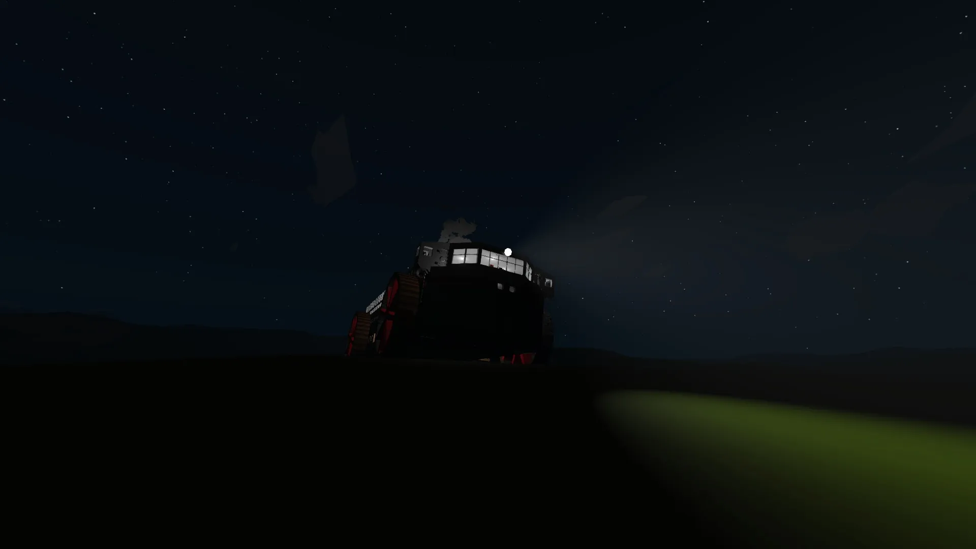 In addition to the main vehicle there is also an amphibious half-track that can be deployed in lifeboat fashion, and hoisted back up after use. It is intended for scouting the path ahead so the landcrawler won't need to. It is also usable as a lifeboat. I don't feel like explaining the controls of this thing so I'm not going to, but it is worth noting that it is neither a good car or a good boat. Remember to attach the rails of the craft to the grippers of the hoist so it will not fling around everywhere, especially in low physics settings.
