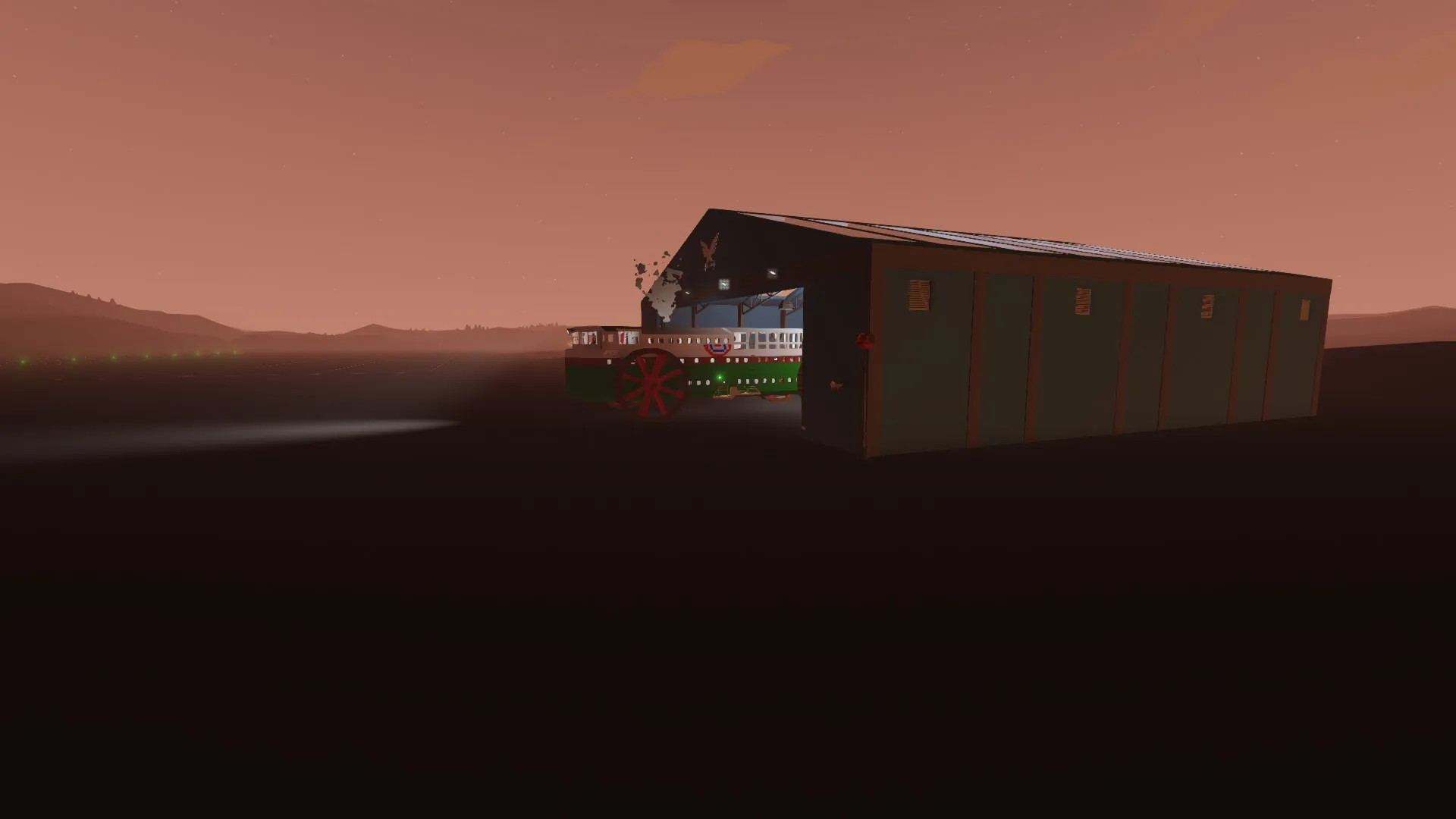 For trees, and certain rough terrain, deployable guards are located on the front and both sides of the ship, controlled with the respectively labeled levers. The main Function of these is plowing down trees when you want to drive through a forest. The front plow mainly protects the fuel tank, while the side plows are for the gangways and the halftrack. Do note that the halftrack is rather fragile and will combust upon contact with trees. Fire extinguishers are located in red cases mounted in various parts of the ship.