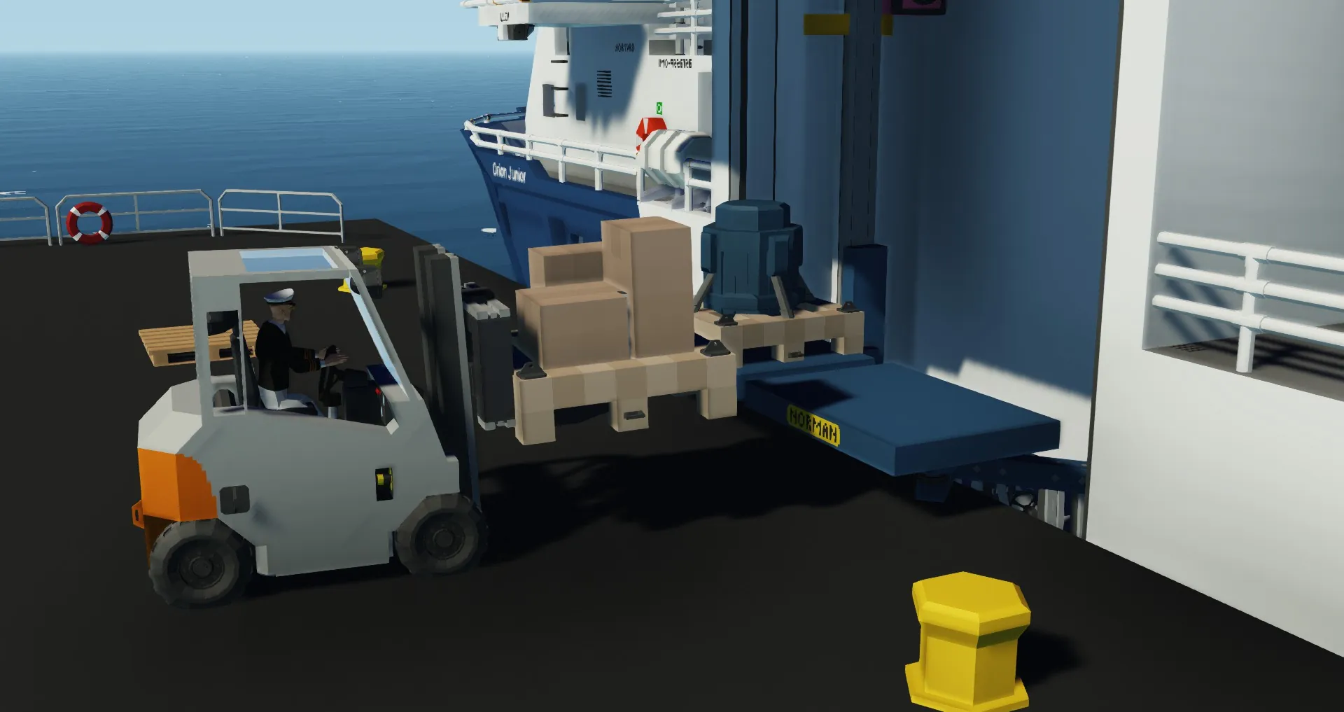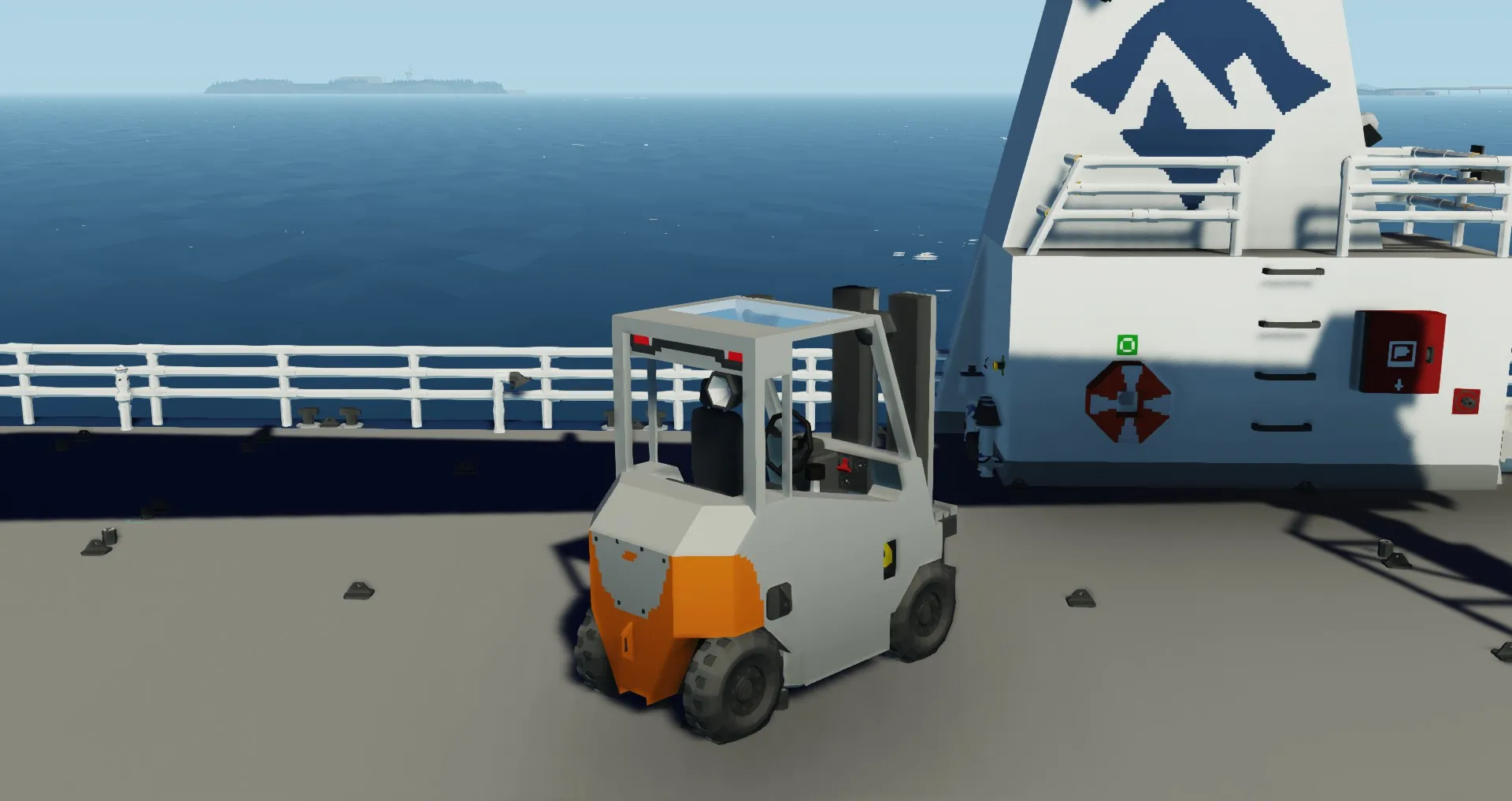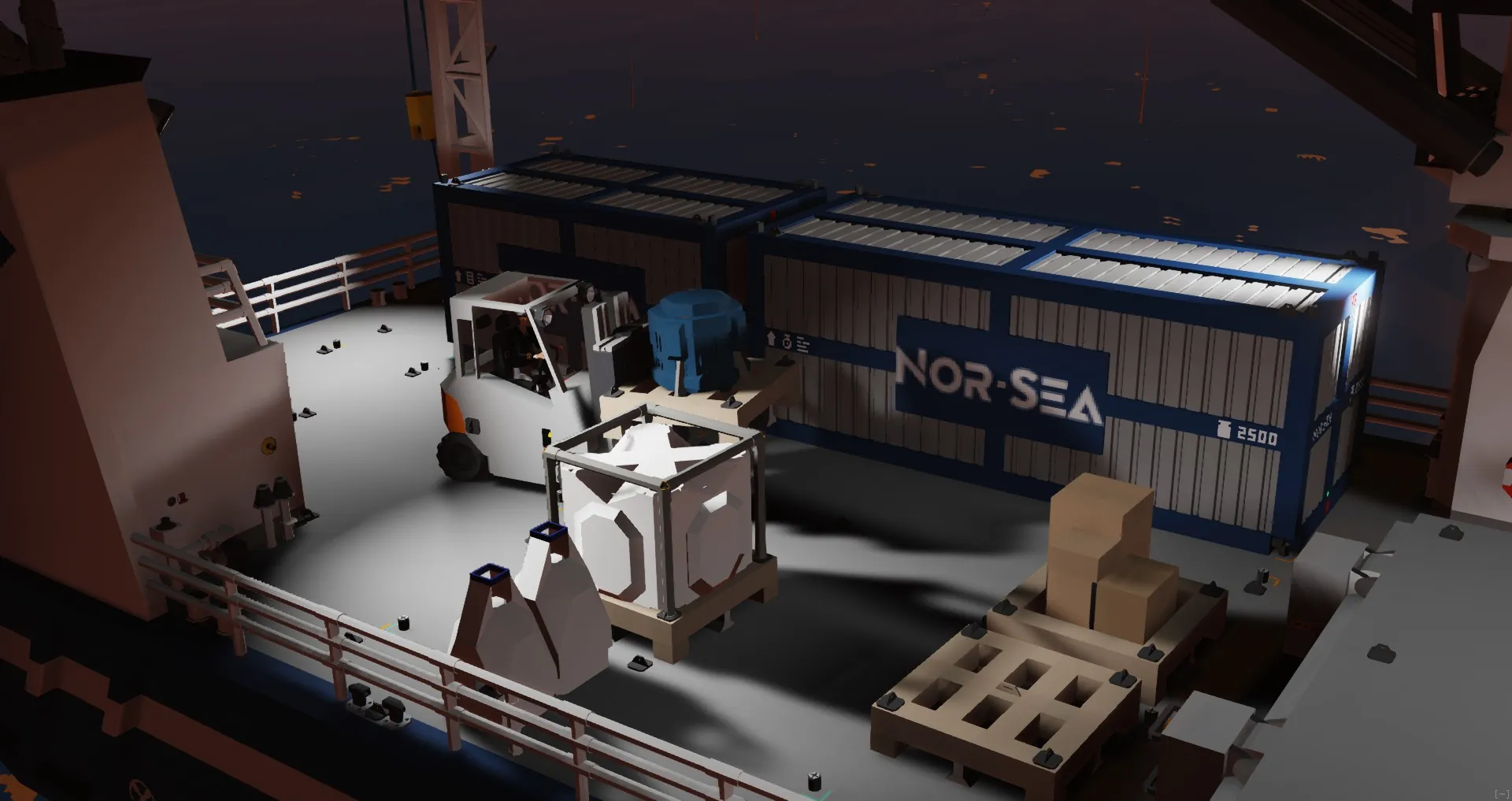 A small forklift that is really good for lifting things and placing them down in a different spot!
