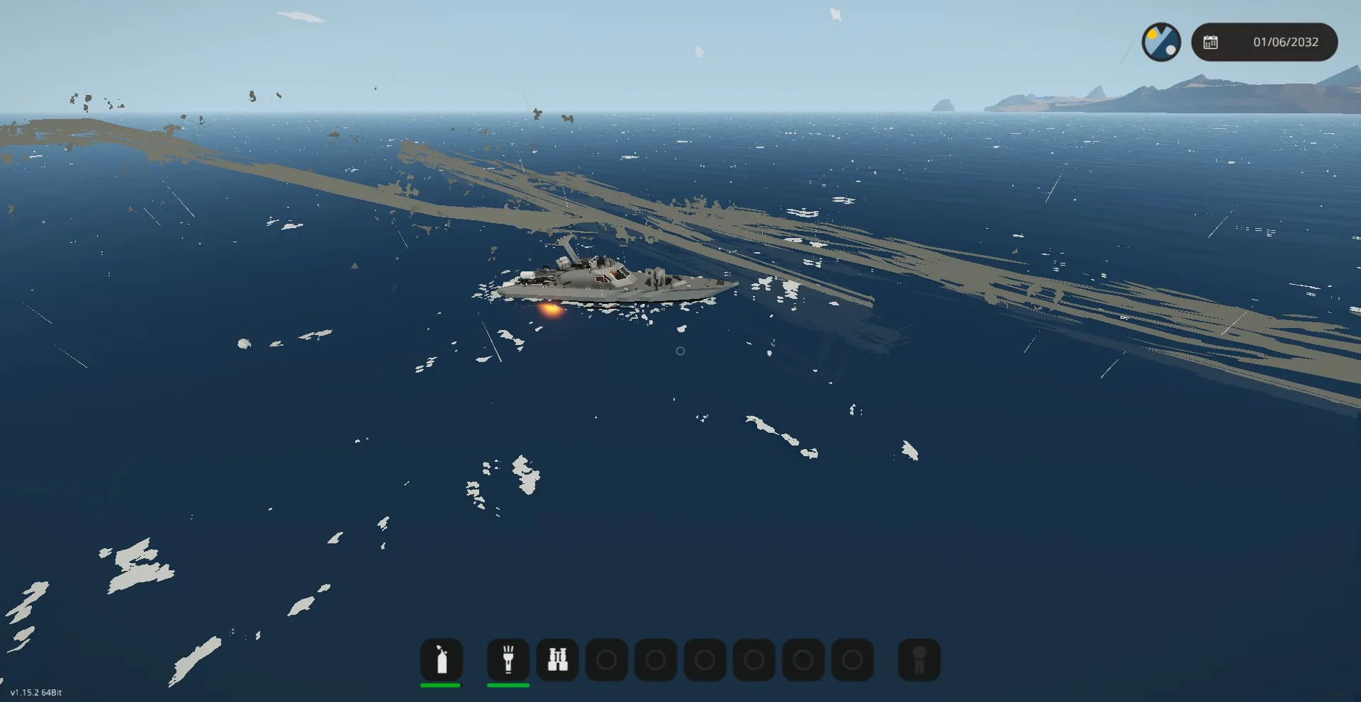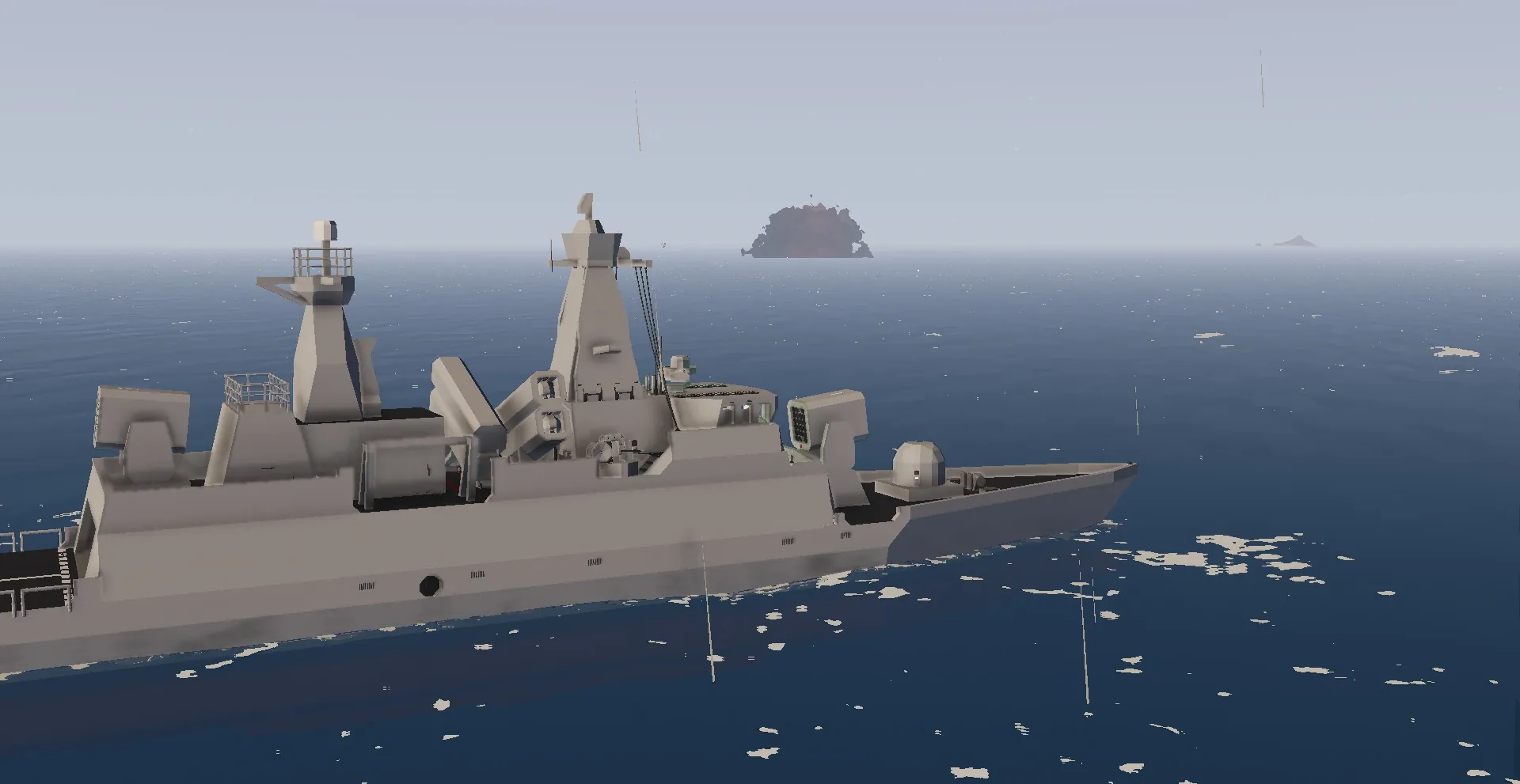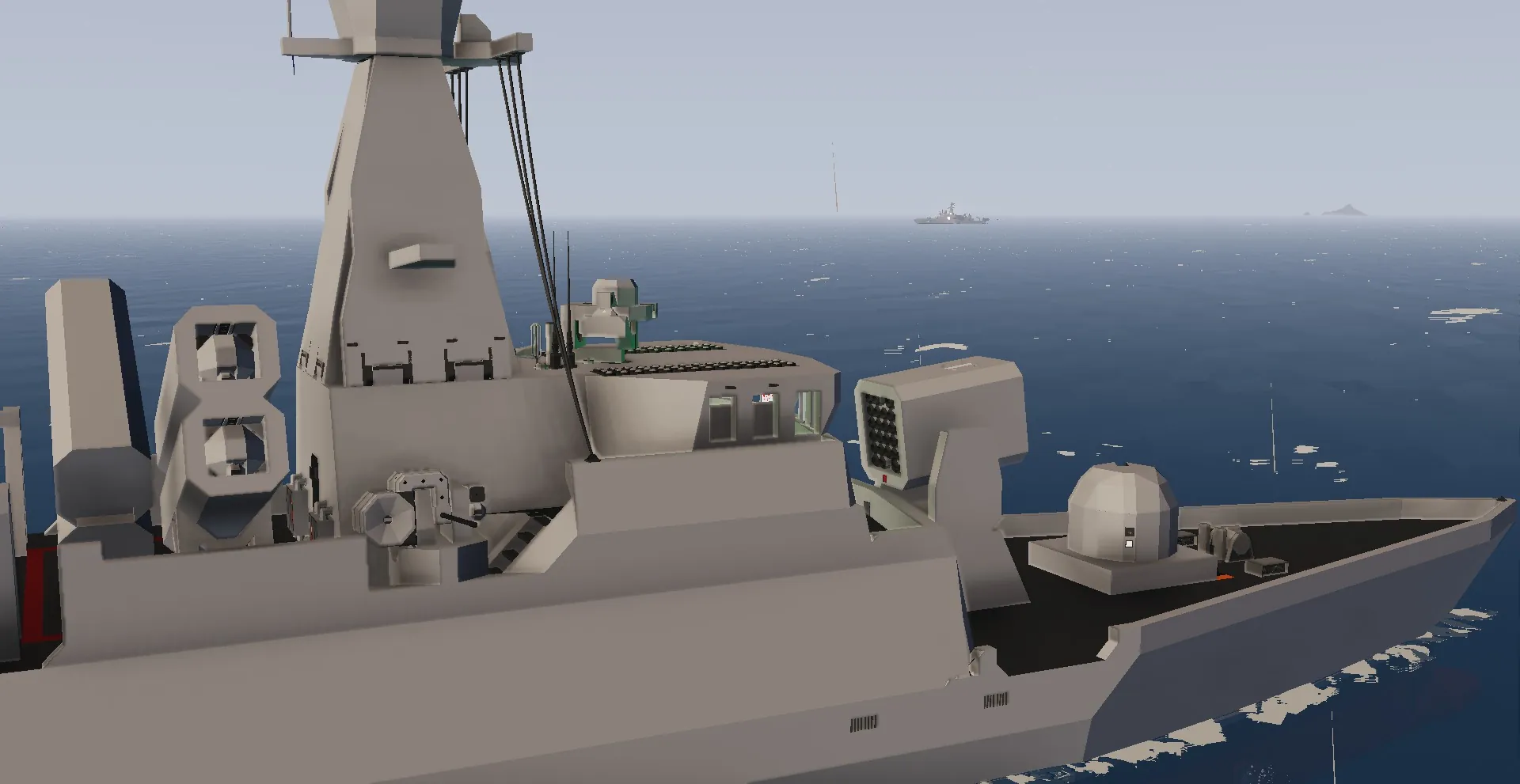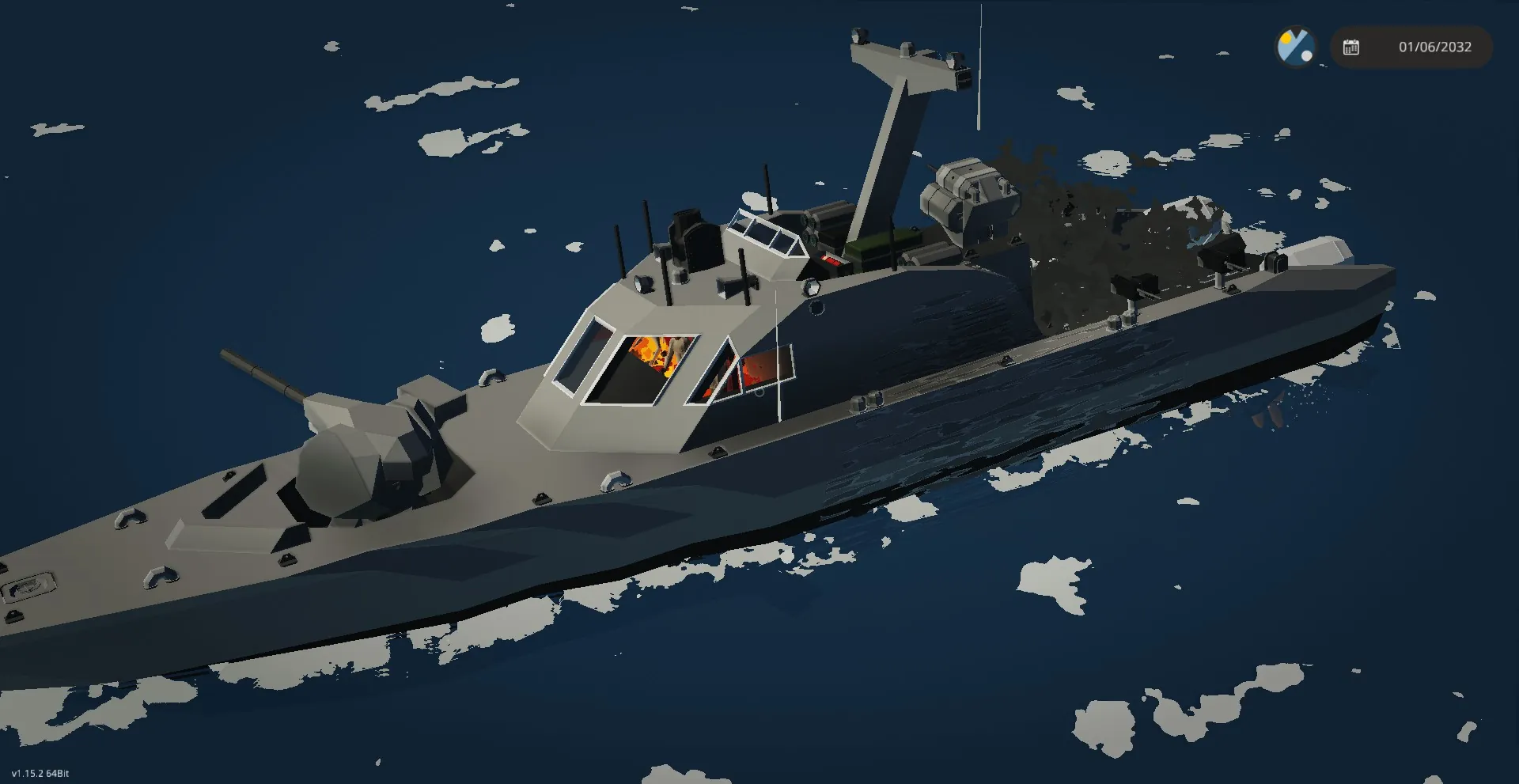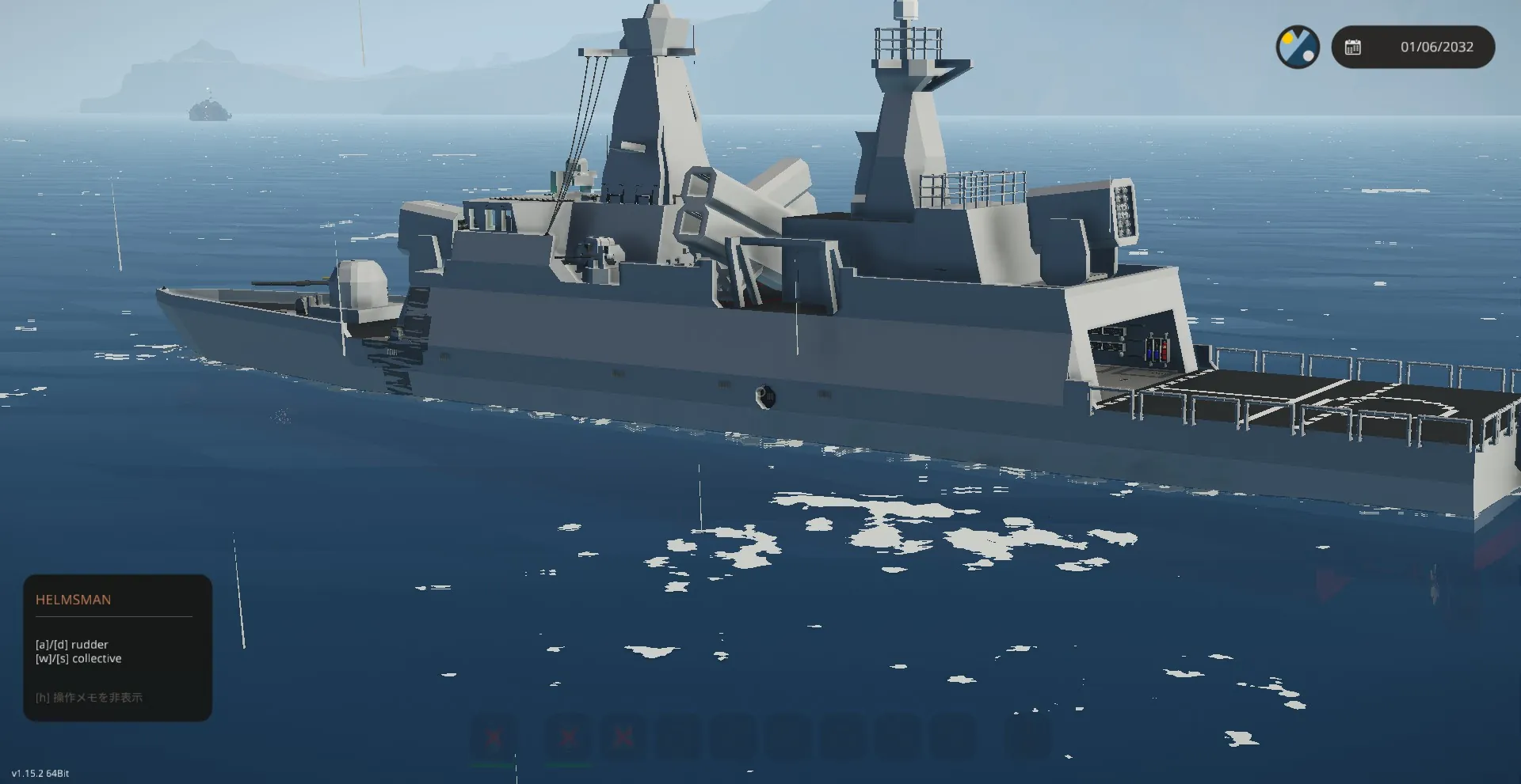 This is a 50-meter-class combat vessel with improved versatility compared to the NSB-01 missile boat. In addition to the single-barrel dual-purpose rapid-fire gun inherited from the NSB-01, which is capable of engaging helicopters and large/small vessels, it is newly equipped with two single-barrel universal machine gun systems capable of engaging small boats and suicide drones. Regarding anti-ship missiles, the total number carried remains the same as the NSB-01 at four. However, unlike the NSB-01, which carried four NSSM-01 missiles specialized for large vessels, this vessel is equipped with two NSSM-02 missiles and two NSSM-01 missiles. The NSSM-02 is a top-attack type explosive-filled missile capable of targeting both ships and land targets, while the NSSM-01 is specialized for large vessels. This allows for greater versatility in mission capabilities. For a corvette, emphasis has also been placed on anti-aircraft capabilities, with one OMGS Mark.05 Aegis System-compatible model mounted forward and aft. While it may struggle with supersonic missiles or top-attack missiles, it can handle saturation attacks from low-threat targets equipped with simple subsonic missiles. Since it does not have a VLS, it may be a bit of a challenge when facing major powers, but as a precursor to the currently planned 70-meter-class large frigate, it should not be a significant issue. Have a good Stormworks life!