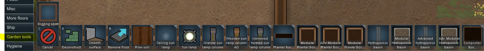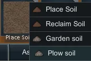 -Use Fertilizer to create Garden soil or Plowed Soil, a rich soil tile. Can be remove with the floor tool.
