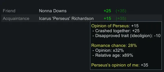 It is worth noting that the effect increases depending on the number of preferred and disapproved traits. The presence of at least one disapproved trait cancels out the potential bonus from preferred traits.