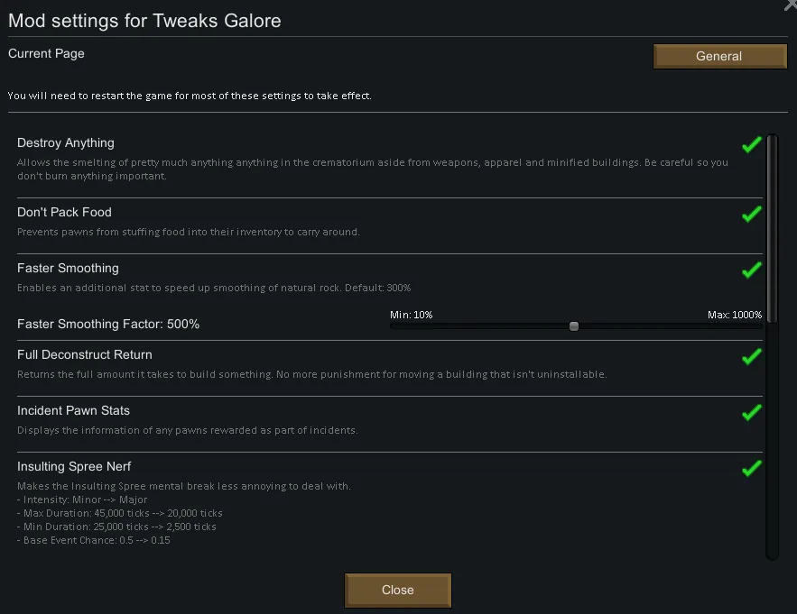 It should be obvious that any tweaks this covers will conflict with a standalone mod doing the same thing if both are enabled, my own mods included, like Ancient Demolition and Mechanerf.