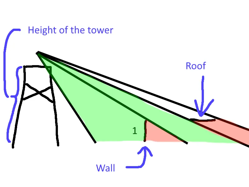Roofs can block LoS, thick roofs block LoS as if they are of infinite height