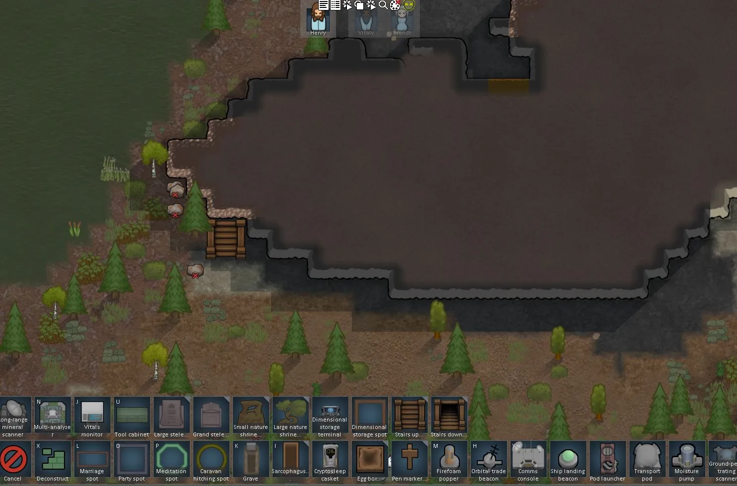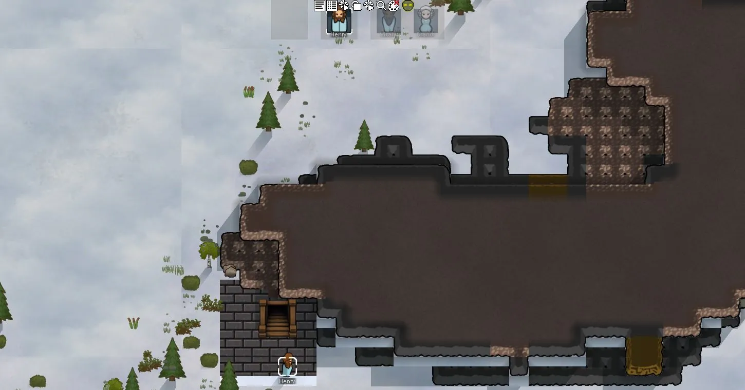 • Upper floors and underground levels per map tile. Build stairs (up/down) to move pawns between levels; stairs can be built with wood, stone, or metal.