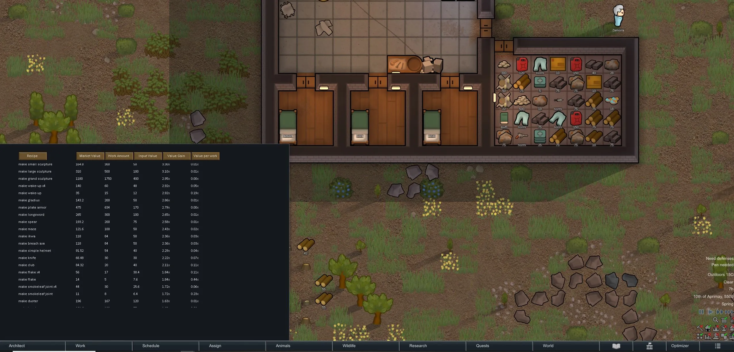 I like to minmax my colonists time, and wanted a way to identify the best items to create to get the highest return on the items created.