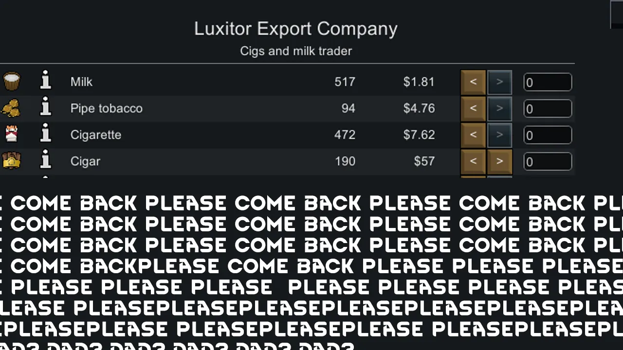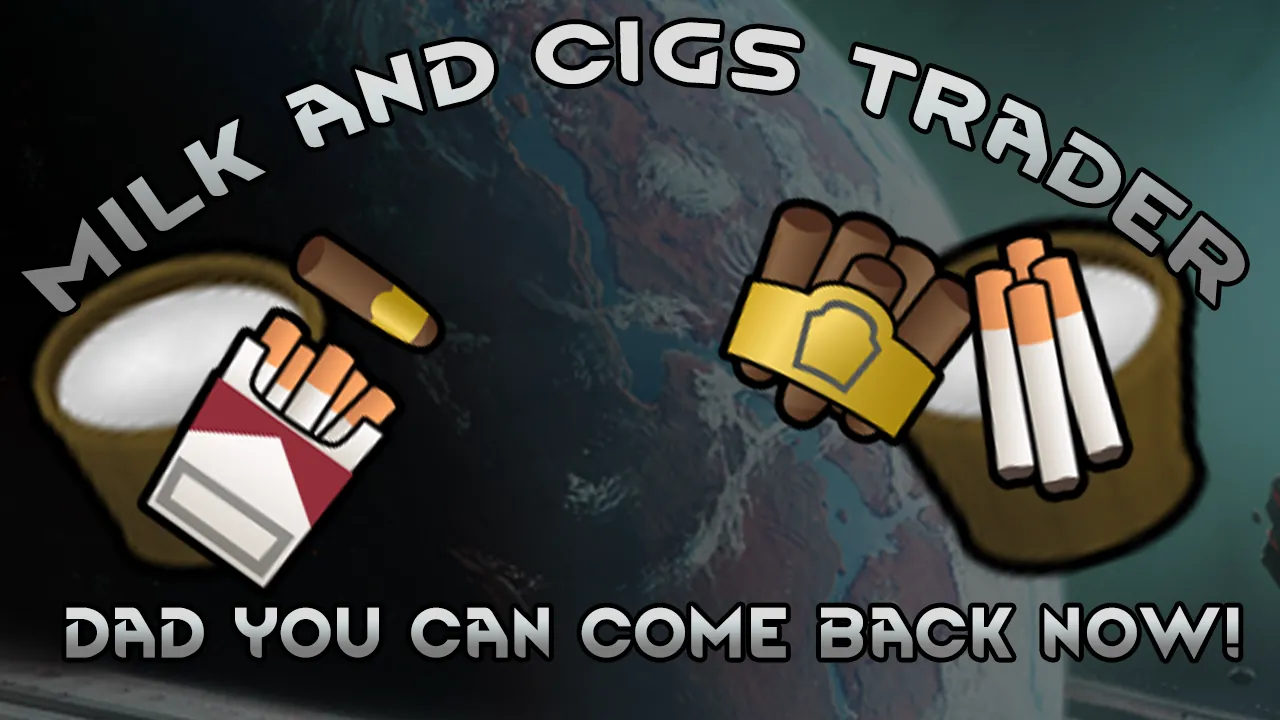 This mod adds a cigs and milk orbital trader! Now your pawns dads might return! They dont need to go shopping anymore for 20 years!